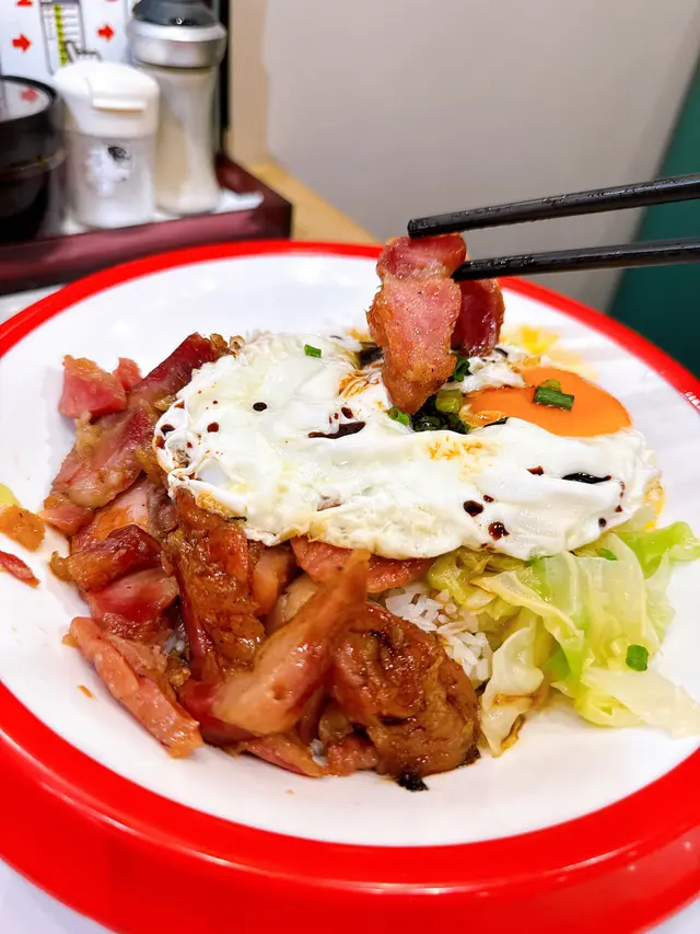 (菠蘿豬扒蛋包)菠蘿包微熱鬆軟,太陽蛋金黃色好靚,豬扒軟腍入味,中間有沙律醬、生菜,豐富美味