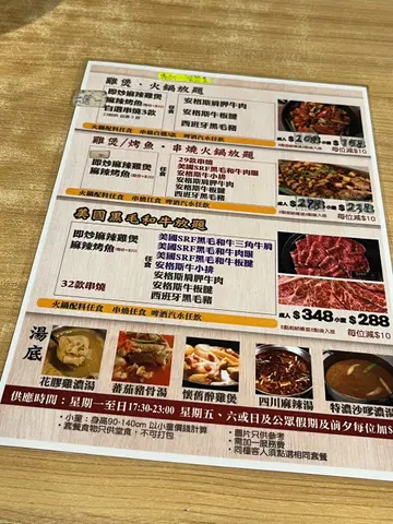 除了牛肉之外其他都不要叫,因為不好食及凍一樣的。飲品選擇少/無乜醬料可選/也無乜特別多人/環境像街頭大排檔/桌子及座椅不潔/餐具也是/食物不行/應該無下次/只有無限制時間上可取。洗手間環境一般/啤酒有幾種/雞煲的雞肉好生要炒好久,雞肉味道一般,湯底選了特濃沙嗲,味道不夠濃好淡,海蝦也OK,韮菜餃是(來貨那種),蟹柳像冰條(味道一般),炸魚皮ok嘅,墨魚仔都ok,串燒就凍的非常難食,隔離枱叫咗串燒但係完全冇食過。…查看更多