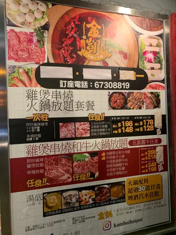 雞煲、串燒、火鍋,一次過滿足3個願望先上雞煲,小朋友食所以叫唔辣,好夠味,小朋友都食到停唔到口。留肚食串燒(都可以備註唔辣),叫左:司華力腸,大大條燒到脆卜卜牛肉粒,易咬好味蜜糖雞翼秒速俾小朋友食晒雞軟骨、牛舌、菇……都好正燒海鮮:蠔:一般啦,都ok既扇貝:好味,蒜香好香蝦:一般,少少梅火鍋,叫左花膠湯底:肥牛有4款,個人感覺牛小排最正,其次安格斯炸魚皮:香脆其他叫左牛筋丸、鵝腸、鴨血、餃子、生根響聆…… 大滿足的邊爐菜:紙仔冇菜,但問職員有既,自己寫個「菜」字x1,就上一份,有生菜同油蜜菜,乾淨清甜飲品:汽水啤酒任飲,仲有清涼爽同馬蹄爽,紙包茶…查看更多