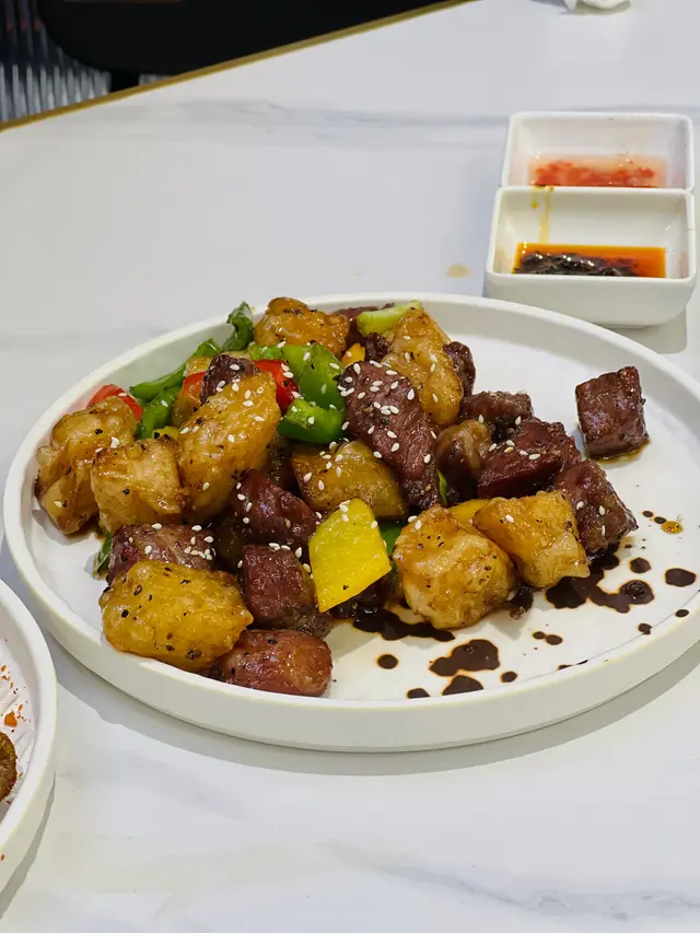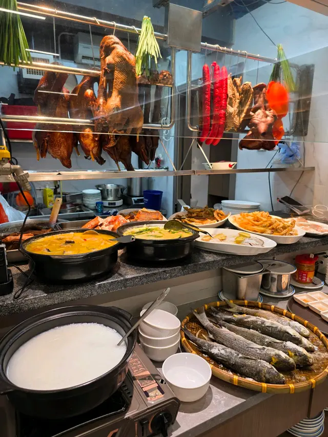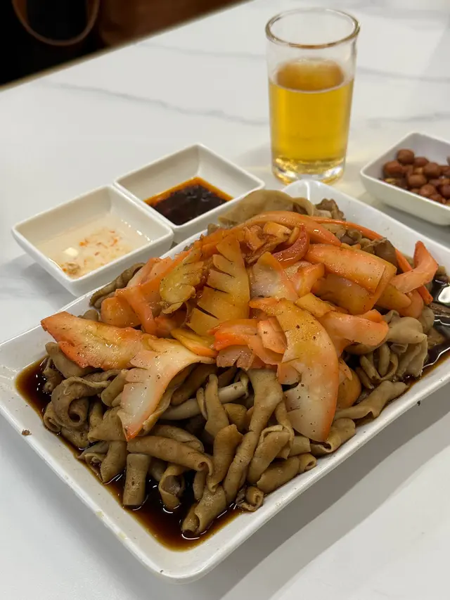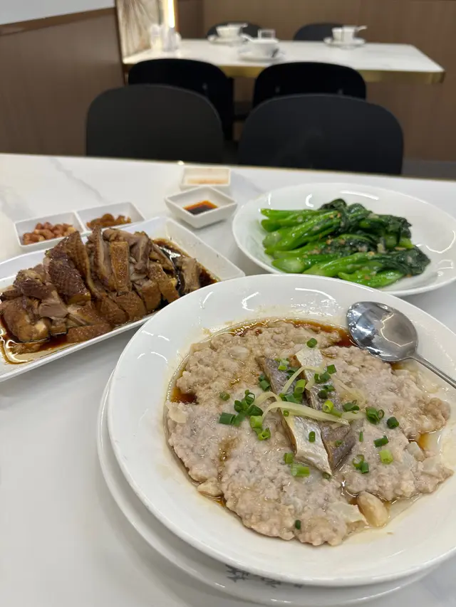 今晚終於約佐幾個舊同事出街聚聚,去旺角試佐呢間新開嘅潮州菜餐廳。朋友之前同我講過,話呢間抵食又舒服,座位設計好有氣氛,於是我同幾個兄弟一於試吓。入到去,環境真係唔錯,裝修現代又唔失傳統feel,仲有個開放式廚房,睇到廚房師傅忙緊,感覺好親切。。我哋一坐低就叫咗例牌嘅滷水鵝,$138一碟,份量真係驚喜到我!待應放低碟時,我仲忍唔住問咗一句:「呢個係例牌份量?」因為實在太誇張,除咗鵝肉,仲有豆腐同花生,味道滷得入味,鵝皮Q彈,肉質軟滑,花生同豆腐吸咗滷水汁,食落去好滿足。之後我哋再叫咗一碟椒鹽九肚魚,$138,上面灑滿咗炸蒜,香氣一出嚟即刻勾起食慾,魚肉新鮮又脆口,椒鹽調味唔太鹹,配上蒜香真係一流。。主食方面,我哋點咗砂鍋蠔仔粥,$88一窩,熱辣辣嘅砂鍋一上枱,蒸汽同香氣即刻撲鼻,蠔仔新鮮,粥底濃滑,仲有啲芫荽同蒜粒提味,暖胃又唔膩口。食到一半,我同朋友講,呢間真係抵讚,份量同味道都夠晒水準。環境方面,間餐廳有冷氣同吊扇,感覺涼快又舒適,枱同椅設計都好有心思,坐低真係放鬆咗好多。。整體嚟講,呢間餐廳食物質素同環境都令我地滿意。朋友講得啱,呢間潮州菜真係值得一試。食完之後,我哋仲坐咗一陣吹水,時間過得好快。同埋呢刻我先發現原來餐廳優惠食滿$300可以加$8多一碟雜錦拼盤或者韭菜豬紅,但係我哋已經太飽,唯有下次同家人一齊再嚟,試吓其他菜式。…查看更多