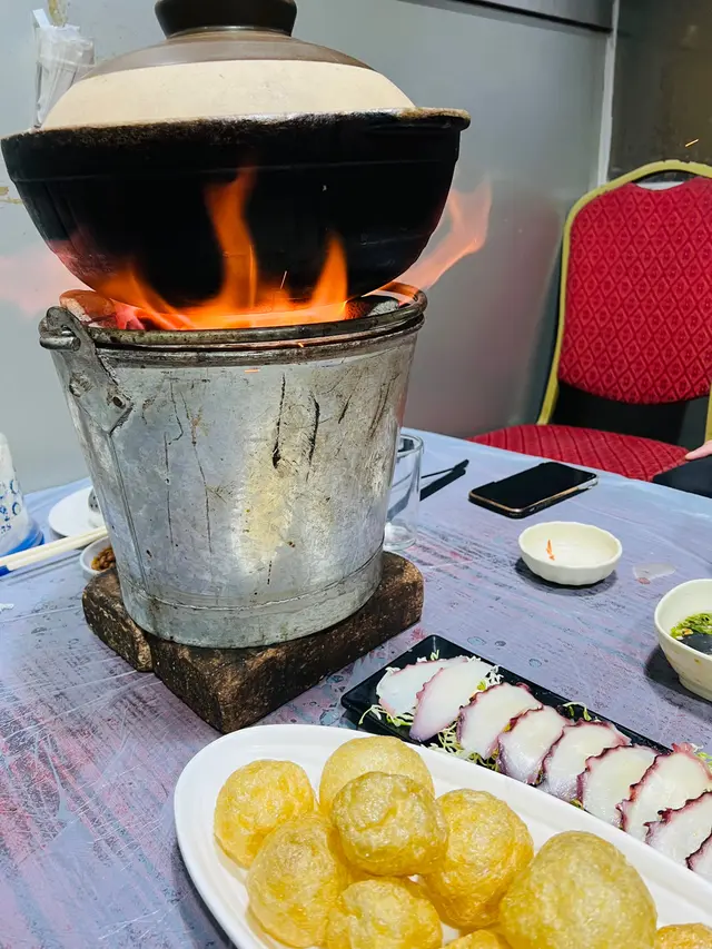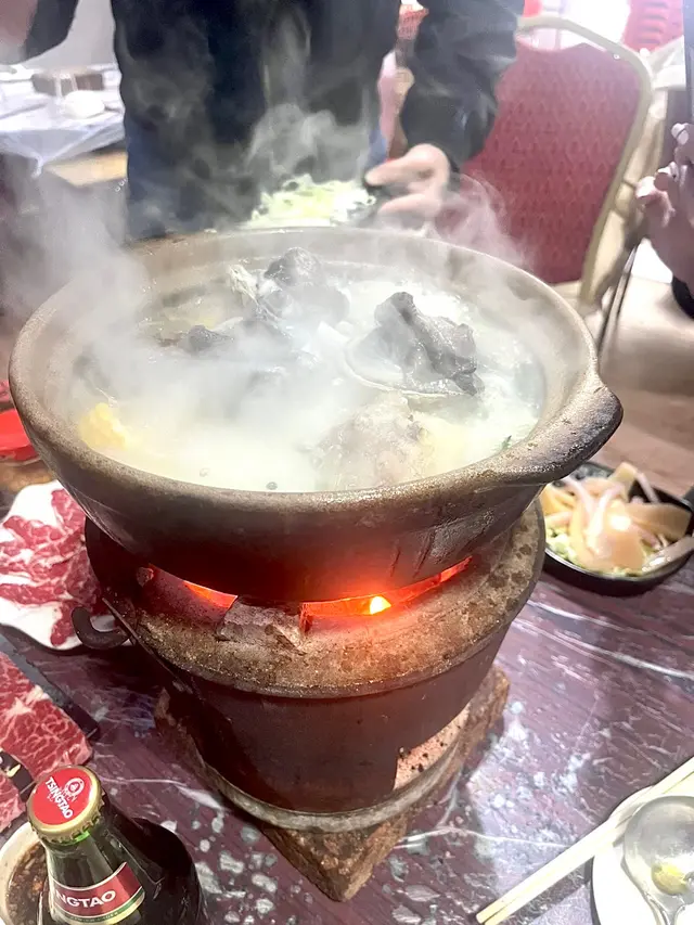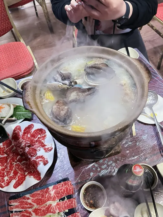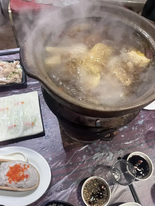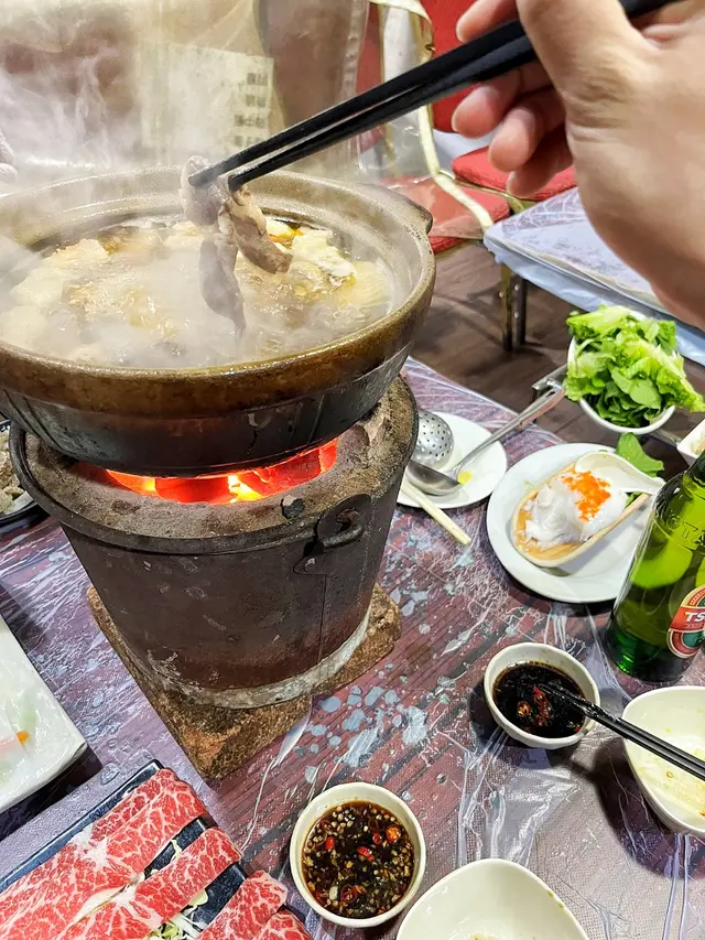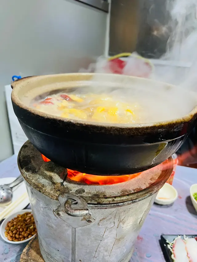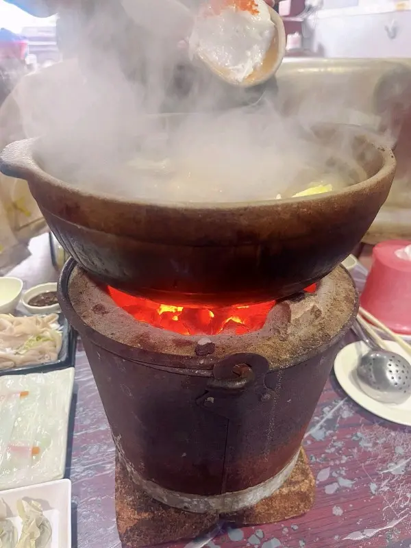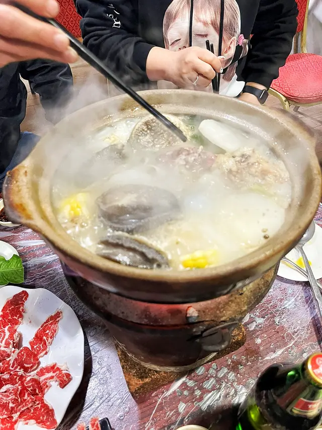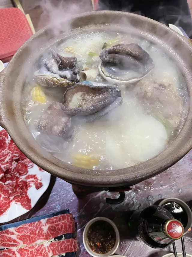 念念不忘炭爐嘅風味初嘗喺香港用炭爐打邊爐- 馳名豬骨煲 $138 瓦煲 +$38- 花生 $13- 醬油*2 $36- 五頭南非孔雀鮑魚*2 $118-卜卜大蜆 $90- 本地手切牛肉 $228- 自製墨汁墨魚滑 $135佢有好多款湯底可以揀 我哋揀咗豬骨煲 滾咗之後一打開蓋聞到濃濃嘅胡椒味(諗起好耐冇飲胡椒豬肚湯🤣) 入面豬骨都有三四舊 仲有啲粟米蘿蔔 個湯底好鮮甜 不過有少少唔明點解瓦煲要另外再加錢🤣話說有次我諗住walk in去食 點知已經訂位滿座今次預早兩日book位終於試到😎訂位個時仲可以落定order留海鮮 保證新鮮 我哋就留咗兩隻鮑魚同蜆 鮑魚好厚肉 口感唔錯 夠鮮甜 大蜆又係好新鮮 食落好鮮甜手切牛肉放入煲淥一淥就食得 佢哋其實仲有幾款牛肉可以揀 包括吊龍 牛柳邊 但賣灑就冇佢哋嘅墨魚滑彈牙又滑 份量都算ok聽講佢哋啲墨魚片都好出色 淥三秒就食得 有機會再試吓💰$796…查看更多