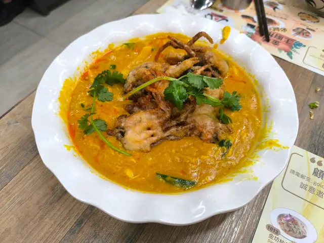 -同屋企人3個去食泰國菜,呢間係阿媽推介,咖喱炒軟殼蟹連埋蒜蓉包都唔貴,呢一個係必點,黃咖喱十分濃厚完全唔會辣,配埋蒜蓉包可以唔洗叫飯都得,勁好食食唔停炒粉絲有啲油、入面有青椒同埋鮮魷,呢個普通啦我覺得燒蠔係必點,試過一次嚟到賣哂,隔離枱有叫到勁大隻,所以今次我叫咗4隻,大部分都係大大啖肉,勁juicy😙,燒蟶子都好抵食勁重蒜香味,椰皇沙冰好鮮甜,飲得出係新鮮椰皇搾出嚟,幾乎次次嚟都會叫,食完準備埋單仲會有個椰汁糕送,食落好似椰皇啫喱咁🥴,勁飽-▶︎水(免加一) | $3/位▶︎咖哩炒軟殼蟹+蒜蓉包6條 | $138▶︎馬拉盞海鮮炒粉絲 | $88▶︎特價燒蠔 | $18/隻 每人限叫兩隻▶︎特價燒蟶子 | $18/隻 每人限叫兩隻▶︎椰皇沙冰 | $33▶︎白飯 | $13▶︎椰汁糕 | Free--🏠【金坊泰國美食 Golden Thai】📍將軍澳寶琳欣景路8號新都城中心二期2樓2016號舖🕑星期一至日 11:30 - 16:30 17:00 - 22:00…查看更多