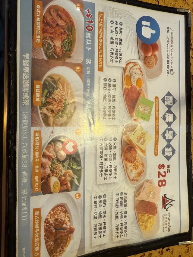 📍金坊泰國美食 (荃灣)荃灣荃興徑13號地舖與朋友點了兩個早餐M4沙嗲牛肉公仔麵+煎蝦餅雙蛋丹麥多士M3 遊船湯河+腸仔雙蛋丹麥多士點餐和出餐的職員態度也讓人不悅。職員送餐時,每次也很大力把食物放在枱上,毫不在意客人感受,整個用餐體驗真的很糟糕。早餐賣相令人失望,最基本的煎蛋,擺盤也令人缺乏食慾。湯底只有顏色,幾乎沒有任何調味。河粉碎上 淡而無味朋友點的煎蝦餅更恐怖,明顯不新鮮,味道亦變質,難以下嚥。讓人非常失望,我未來亦不會再光顧。希望他們能改善食物質量和服務態度,讓顧客能有更好的用餐體驗。————————————————————整體用餐體驗✨味道(1/5)✨環境(1/5)✨服務(1/5)✨性價比(1/5)