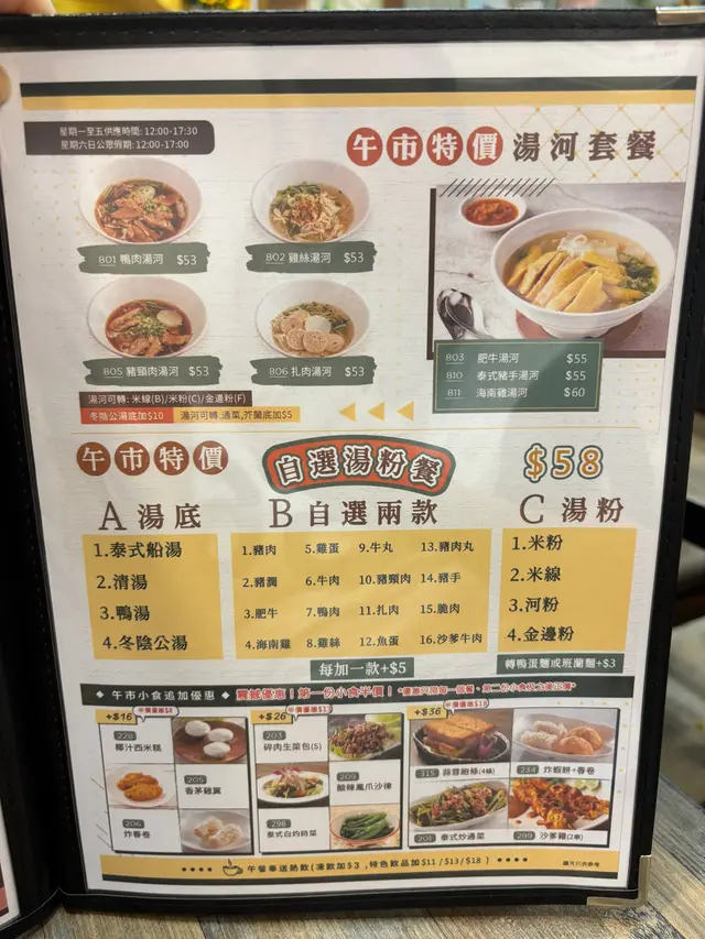星期一至日,下午茶都係由2點開始。除左午餐外,佢地下午茶選擇都算多。基本上每一個餐都可以跟唔同泰式小食及串燒❤️有船麵亦都有飯類,但如果大食嘅朋友仔就要留意返,未必夠飽。另外如果叫湯河就留言下河粉比較碎,食落去唔夠彈牙串燒雖然燒得耐,但夠熱,不過醬汁不夠味,如果多點花生味就更好。船麵料係十分豐富,不過賣相一般,好多餸都沉底,喜歡嘅朋友仔需要自己尋寶一下。最有驚喜係佢款咖哩角,吃落口滿滿咖哩薯仔,非常滿足