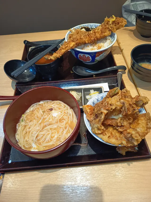 入東涌Outlet行街, 發現原來有間食天婦羅既金子半之助,平時係市區都要等位,難得今次可以直入,即刻去試試。餐廳裝修以木系為主,牆上仲畫左大大棵櫻花樹,猶如置身日本。一入左就比左兩杯黑豆茶~味道濃郁叫左個必食既江戶前天丼,份量十足! 入面既招牌穴子天婦羅長達30cm, 大大大大件好吸引,超厚肉身,肥美軟滑。兩隻海老彈牙爽口,小柱魷魚天婦羅餅入口煙韌,炸前輕輕係面𠝹左格仔花, 可以逐格食,好方便。流心蛋炸得啱啱好、香濃蛋汁同埋海苔及、莢豌豆一齊食,味道豐富。朋友叫左個迷你魷魚&海老天丼, 由於金子半之助採用日本特製高級胡麻油,胡麻油製成的天婦羅芳香撲鼻及色澤會較深,所以整體炸得均勻,唔會好油膩,內裏仲保留咗食物鮮味,值得一讚。仲配多個冷稻庭烏冬,扁身既稻庭烏冬,沾上淡淡昆布凍湯先食,入口特別清爽。另外仲叫碟日式炸雞,果然係天婦羅專門店,雞肉外皮香脆,內裡鮮嫩充滿肉汁,一D都唔會太乾身,有驚喜!仲有個飲品放題,可惜食得太飽,下次有機會再試。…查看更多