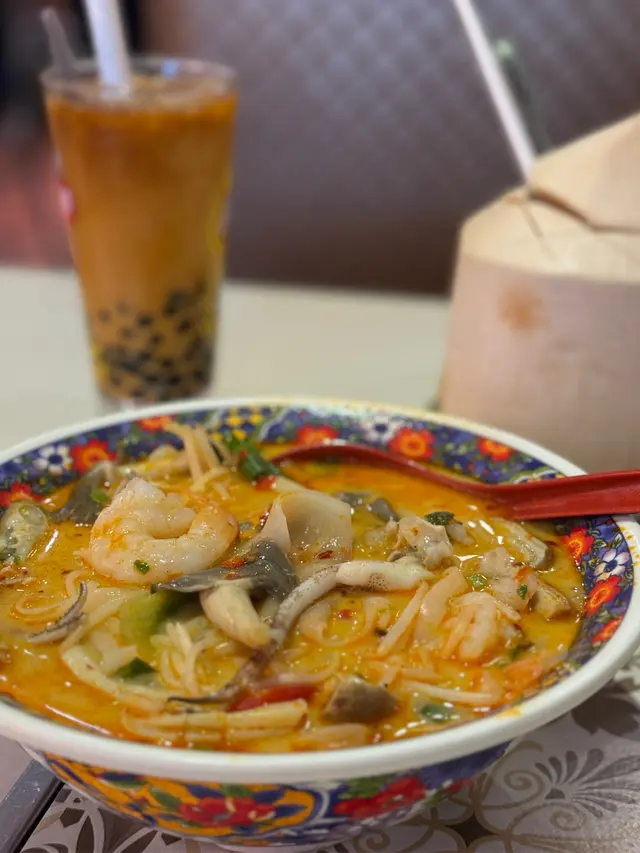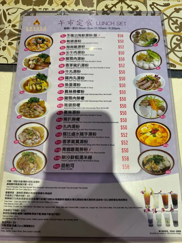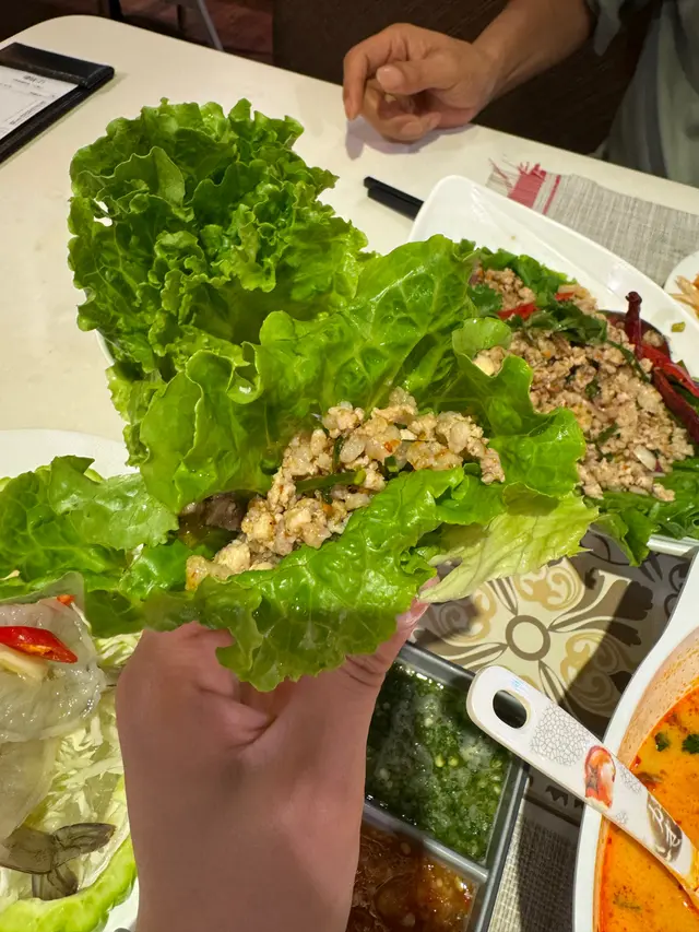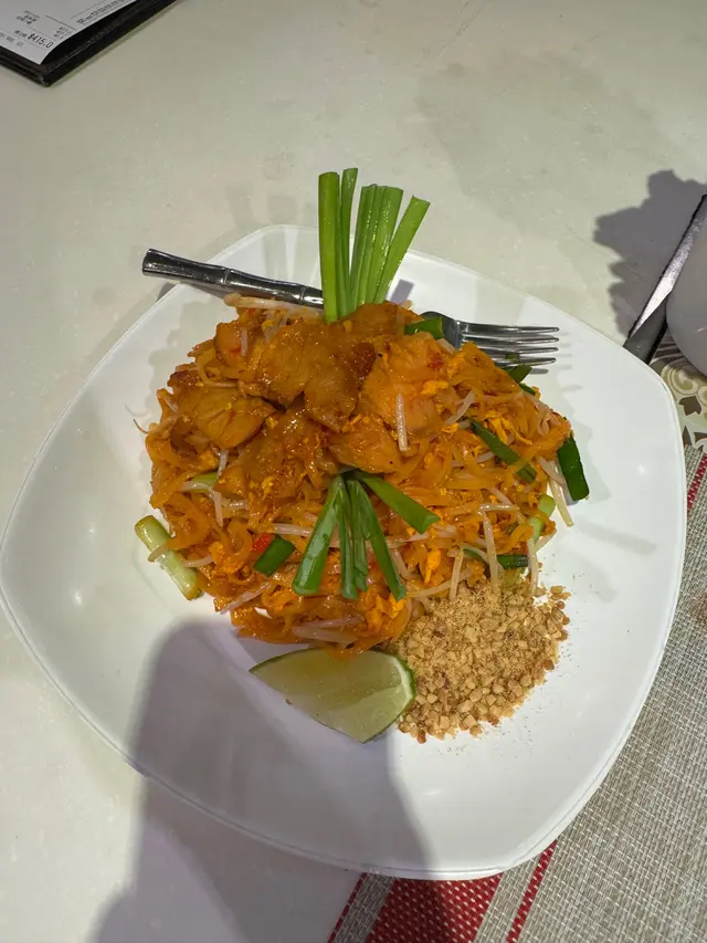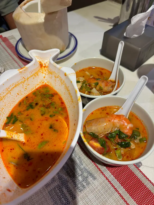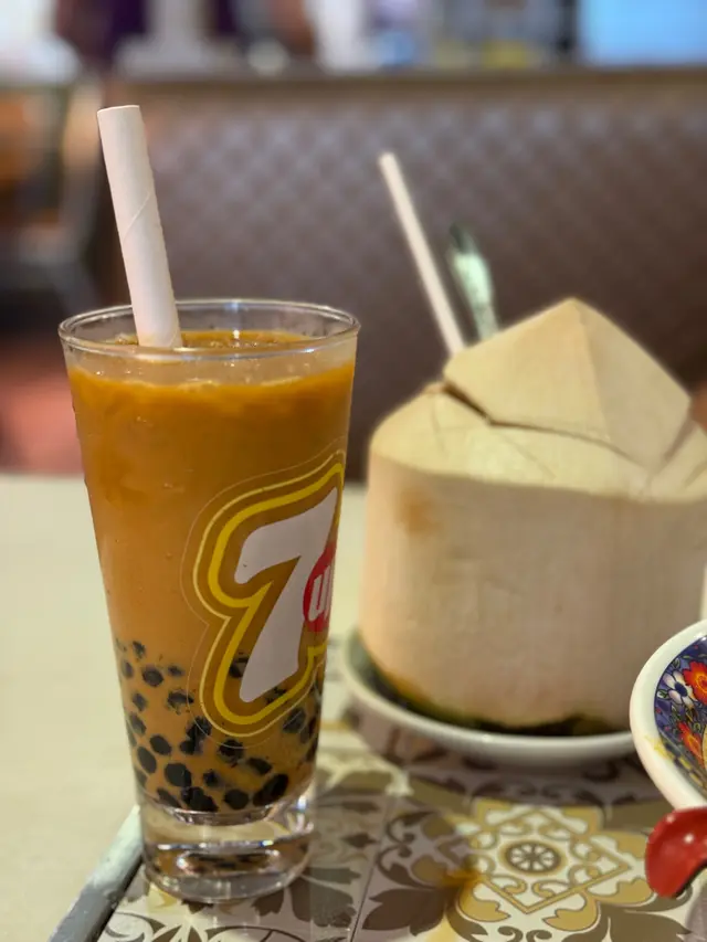 荃灣泰國菜餐廳選擇多.今次我試咗近Citywalk嘅依間餐廳, 真心唔錯!菜單超豐富.串燒、炒菜、河粉、海鮮、甜品, 應有盡有.而且價錢親民, 性價比高.令我忍唔住叫多幾款嚟試.泰式濕炒豬肉河粉 (HK$78)可揀乾炒或濕炒.肉類方面, 有豬、牛、雞揀.今次我就揀咗個平時少食嘅濕炒豬河.濕炒河芡汁會比較多.河粉幼身, 口感煙韌.係用豆瓣醬炒, 好香, 好有鑊氣.除咗有豬肉片, 仲有菜同埋菇.調味適中, 食落唔會好鹹.沙嗲串燒雞肉 (HK$88/6串)我覺得沙嗲配雞肉係最好食, 所以揀咗雞串燒.依個雞肉燒得乾身咗啲.不過點埋濃郁嘅沙嗲醬食都幾惹味.馬拉盞炒鮮魷通菜 (HK$88)炒通菜都有兩款.我揀咗有魷魚嗰款.魷魚爽脆.通菜微辣.我覺得用嚟餸飯應該幾啱.芒果糯米飯 (HK$38)白色嗰隻硬身啲.紫色嗰隻軟糯啲.芒果超甜.落咗椰奶嘅糯米飯甜甜地鹹鹹地咁, 我覺得好好食.原個鮮椰青 (HK$35)椰青好大個.椰青水好清甜.菠蘿沙冰 (HK$30)夠晒冰.唔係好甜.飲完好爽.整體嚟講, 呢間泰國菜味道地道, 選擇多, 抵食又滿足.鍾意食泰國菜嘅朋友, 值得一試!…查看更多
