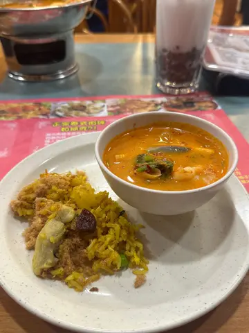一個月後又要飛曼谷,但對泰菜既渴望時常會突襲,所以周中約左朋友出黎食晚飯。呢間金枕頭泰國餐廳性價比極高,星期一至五免加一,二人餐$198真係抵,三款小食、兩款主菜、一款甜品,飲品+$15就有優惠。.講下A項三款小食先:- 泰式蝦餅:表面炸到金黃微脆,咬落先係輕微脆殼,內裡蝦肉粒好實在,用肉眼已經見到d蝦塊,咬落有彈牙既彈性同鮮甜,吾係打成糊既餡,整體吾油膩,配酸甜醬可以提升層次,又吾會蓋過蝦本身既鮮味。- 香芋春卷:外皮炸到薄薄脆,吾會好厚咁吸油,入面既芋蓉份量十足,綿密中帶一點粗糙感,吾會粉糊。芋頭自然既甜味突出,仲有少許爽口既配料令口感有轉折,熱食時香氣更明顯。- 串燒沙嗲雞串:雞塊切得大粒,表面有烤香同輕微焦邊但入面仍然保持濕潤,吾會乾硬。雞肉本身有咬口,帶微微油脂感,但吾會膩。沙嗲汁濃厚,花生香突出帶奶滑感,同時有少許甜和微辣,沾一啖就夠味,令整串更豐富。.B項:冬陰功湯- 湯底酸辣平衡得好好:酸度爽快但吾刺喉,辣度係後勁上黎,暖胃但吾會蓋過海鮮鮮味。湯本身層次多,有檸檬草既清香、南薑既辛辣同香茅既草本香。入面料夠多:大蝦鮮甜有彈性,魷魚有彈牙口感,番茄煮到微軟帶鮮酸,雞髀菇吸滿湯汁又彈。每啖都有料,飲落係有滿足感既湯品。而蒜蓉包沾少少湯,麵包吸住湯汁會帶有蒜香同牛油味,愈食愈惹味。.C項:蒜蓉包- 用法包整體係外脆內軟既經典口感,表面既牛油同蒜蓉煎到釋放香味,咬落會有蒜香先出,跟住係牛油既香滑,同時有微微鹹香。麵包內部保留空氣感,吾會太實.甜品:椰汁西米糕- 椰汁味極濃郁,一入口就感受到厚實既椰奶香同微微既自然甜。西米粒煮到彈牙有咬口,吾會過軟,整體口感係黏滑但吾黏牙,甜度控制得好好飲品:- 泰式奶茶(+$15):杯夠大,茶味同奶味平衡得好,入口先係濃郁既奶香,跟住係微微既茶澀同香料味,整體順滑有厚度,飲落好似真係係泰國街邊飲到既味道。- 可樂($16):氣泡夠爽,甜度夠,配埋炸物可以即時解膩。.另外單點:- 辣肉碎飯 $65:可以揀雞肉係一大加分位。雞肉碎保留到肉感,吾會碎到冇口感,粒粒分明。入面拌左細碎豆角、香葉同菇片,豆角帶微微爽脆,香葉散發一種類似檸檬草既香氣,菇片吸汁又有彈性。整體香口而且有汁,配個燶邊流心蛋,蛋黃一破就同飯同汁融合,令每口更豐富同順滑。- 馬拉盞炒通菜 $69:通菜保持到爽脆既梗感,吾會煮到爛。馬拉盞味道濃而有層次,帶一種鹹香同海鮮發酵既氣息,但店家控制得好,吾會過鹹或太膩。炒既火候令通菜邊位略帶焦香,配埋蒜蓉同少少辣度,整碟夠惹味又夾飯。…查看更多