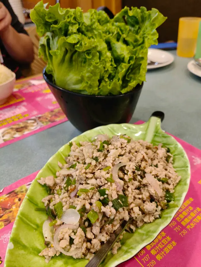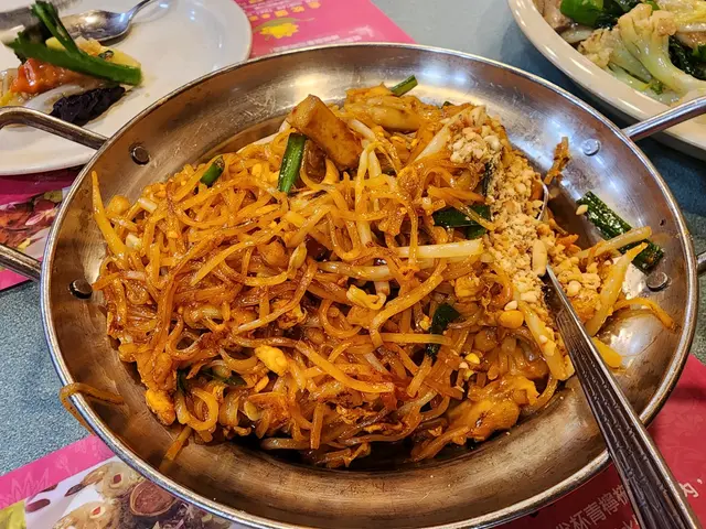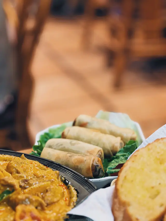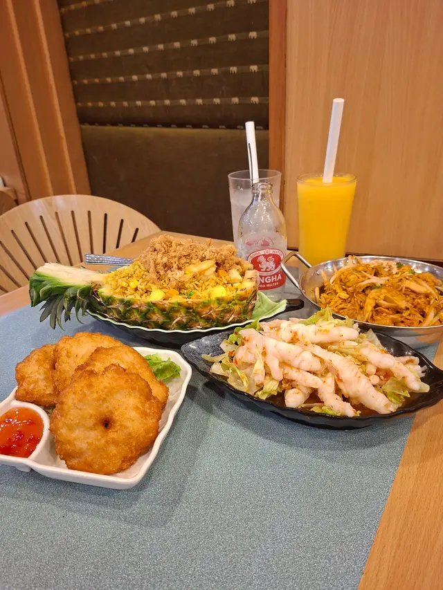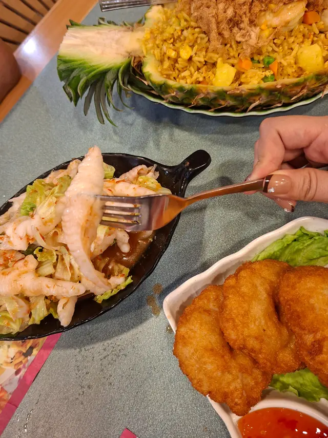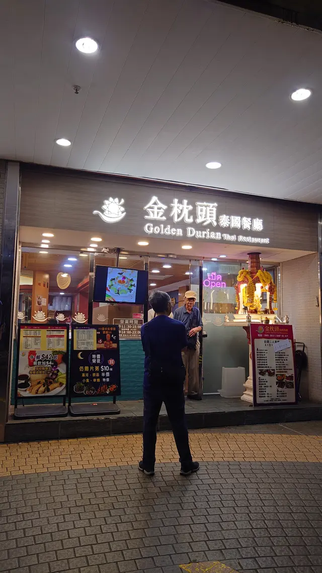 一個月後又要飛曼谷,但對泰菜既渴望時常會突襲,所以周中約左朋友出黎食晚飯。呢間金枕頭泰國餐廳性價比極高,星期一至五免加一,二人餐$198真係抵,三款小食、兩款主菜、一款甜品,飲品+$15就有優惠。.講下A項三款小食先:- 泰式蝦餅:表面炸到金黃微脆,咬落先係輕微脆殼,內裡蝦肉粒好實在,用肉眼已經見到d蝦塊,咬落有彈牙既彈性同鮮甜,吾係打成糊既餡,整體吾油膩,配酸甜醬可以提升層次,又吾會蓋過蝦本身既鮮味。- 香芋春卷:外皮炸到薄薄脆,吾會好厚咁吸油,入面既芋蓉份量十足,綿密中帶一點粗糙感,吾會粉糊。芋頭自然既甜味突出,仲有少許爽口既配料令口感有轉折,熱食時香氣更明顯。- 串燒沙嗲雞串:雞塊切得大粒,表面有烤香同輕微焦邊但入面仍然保持濕潤,吾會乾硬。雞肉本身有咬口,帶微微油脂感,但吾會膩。沙嗲汁濃厚,花生香突出帶奶滑感,同時有少許甜和微辣,沾一啖就夠味,令整串更豐富。.B項:冬陰功湯- 湯底酸辣平衡得好好:酸度爽快但吾刺喉,辣度係後勁上黎,暖胃但吾會蓋過海鮮鮮味。湯本身層次多,有檸檬草既清香、南薑既辛辣同香茅既草本香。入面料夠多:大蝦鮮甜有彈性,魷魚有彈牙口感,番茄煮到微軟帶鮮酸,雞髀菇吸滿湯汁又彈。每啖都有料,飲落係有滿足感既湯品。而蒜蓉包沾少少湯,麵包吸住湯汁會帶有蒜香同牛油味,愈食愈惹味。.C項:蒜蓉包- 用法包整體係外脆內軟既經典口感,表面既牛油同蒜蓉煎到釋放香味,咬落會有蒜香先出,跟住係牛油既香滑,同時有微微鹹香。麵包內部保留空氣感,吾會太實.甜品:椰汁西米糕- 椰汁味極濃郁,一入口就感受到厚實既椰奶香同微微既自然甜。西米粒煮到彈牙有咬口,吾會過軟,整體口感係黏滑但吾黏牙,甜度控制得好好飲品:- 泰式奶茶(+$15):杯夠大,茶味同奶味平衡得好,入口先係濃郁既奶香,跟住係微微既茶澀同香料味,整體順滑有厚度,飲落好似真係係泰國街邊飲到既味道。- 可樂($16):氣泡夠爽,甜度夠,配埋炸物可以即時解膩。.另外單點:- 辣肉碎飯 $65:可以揀雞肉係一大加分位。雞肉碎保留到肉感,吾會碎到冇口感,粒粒分明。入面拌左細碎豆角、香葉同菇片,豆角帶微微爽脆,香葉散發一種類似檸檬草既香氣,菇片吸汁又有彈性。整體香口而且有汁,配個燶邊流心蛋,蛋黃一破就同飯同汁融合,令每口更豐富同順滑。- 馬拉盞炒通菜 $69:通菜保持到爽脆既梗感,吾會煮到爛。馬拉盞味道濃而有層次,帶一種鹹香同海鮮發酵既氣息,但店家控制得好,吾會過鹹或太膩。炒既火候令通菜邊位略帶焦香,配埋蒜蓉同少少辣度,整碟夠惹味又夾飯。…查看更多