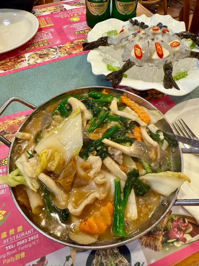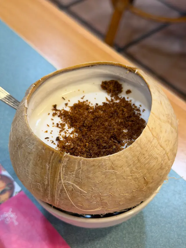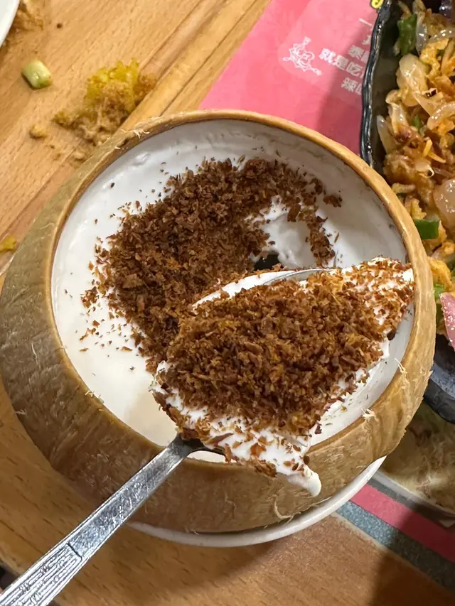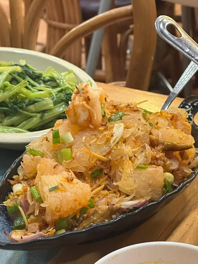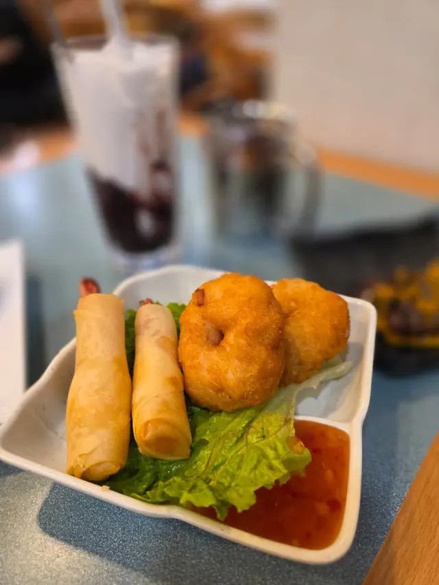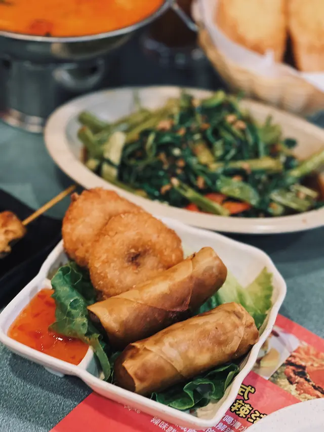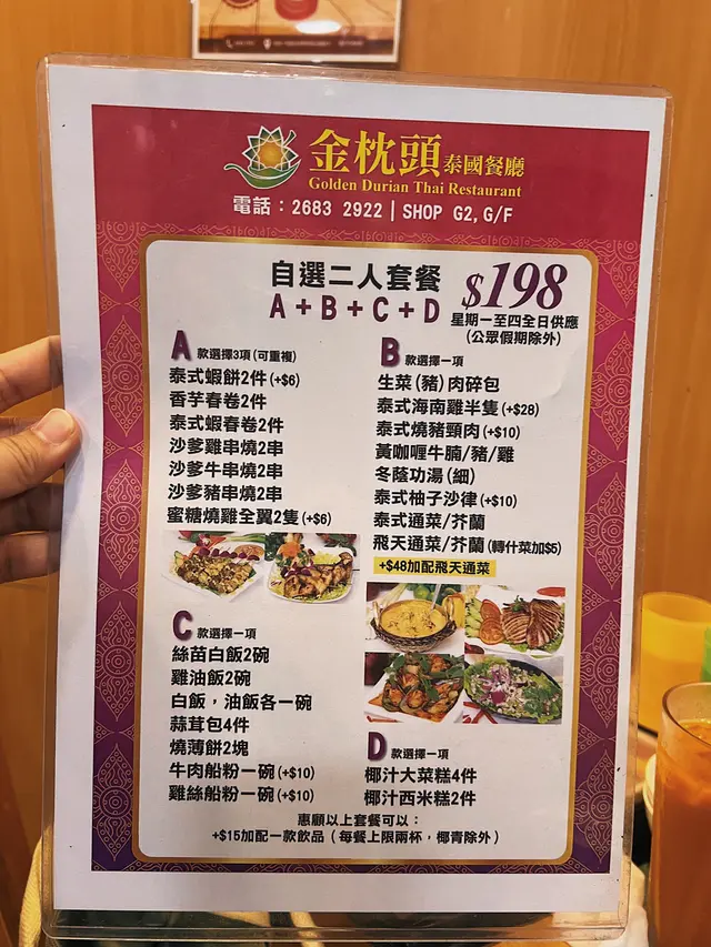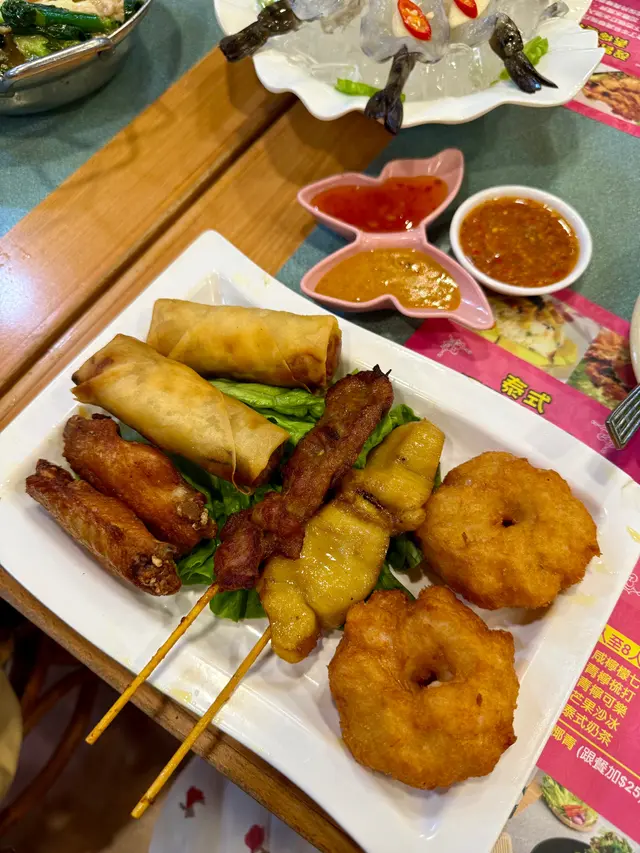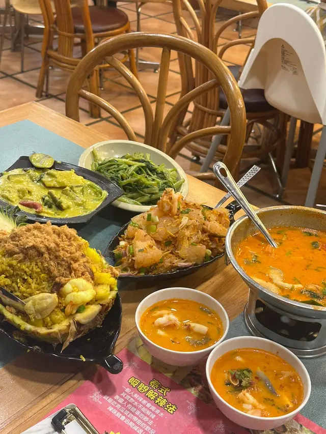 因為朋友話想搵間性價比高既餐廳食正宗泰菜,於是我就緊係介紹我嘅泰菜飯堂-金枕頭泰國餐廳。重點係星期一至五免加一,依家最抵食係佢既二人餐:$198就有三款小食、兩款主菜同一款甜品,份量同組合夠晒平衡,同埋飲品可以+$15追加,真係好抵。.講下二人餐既玩法:佢係分成a+b+c+d四項,a項可以揀3款小食,b、c、d每項各揀1樣,最後總共有6款野——有主食、有小食、又有甜品,樣樣都有,份量又夠兩個人share,飲品只係+ $15就有,對住想慳錢又想食齊既朋友黎講真係岩晒。.香芋春卷 + 蜜糖燒雞翼(加$6)香芋春卷用料吾手軟,外皮炸到金黃鬆脆,每咬一啖都會聽到碎裂聲同芋香慢慢散出。蜜糖燒雞翼加$6,但絕對值得——表面有焦糖化既黏亮蜜汁,燒得微焦帶香,外皮脆而帶黏滑,入面雞肉仲保持嫩汁,甜中帶鹹,好惹味。.泰式炒通菜(B項)呢道份量好大,通菜炒得保持爽脆,莖位仍有彈性,蒜香同少許魚露既鮮味撐起全碟,油份控制得好,入口有鑊氣但吾油膩,配飯或者同其他菜share都好夾.蒜蓉包(C項):佢地用既係法包,外皮烤到微脆,牛油同蒜蓉滲入麵包中,咬落去有牛油既香同蒜蓉既嗆鼻香,邊位微脆既口感同中心既柔軟形成對比.椰汁西米糕(超推薦)呢個真係令我驚喜,椰汁味係我食過最濃郁既一個,西米粒煮到透明又有彈性,入口帶微微QQ既咬口,整體質感滑而吾爛,椰奶既香甜厚實但吾膩,食完好滿足。.泰式奶茶 +$15:係大大杯,奶香豐富同泰國街邊既奶茶味好接近,甜度偏中高但香味足,凍飲冰度夠,夏天飲特別醒神。.泰式珍多冰 +$15綠色果條帶有淡淡班蘭香,口感滑又帶少少彈性,配上椰奶同紅糖漿既厚甜,冰碎令整體好清爽,甜味係層次分明既天然糖香,係夏天解渴又有口感既選擇。.泰式肉碎炒飯(雞) $65最鐘意既係可以揀雞肉!雞肉碎份量足,混合左細碎豆角既爽脆,香葉撕碎散出清新柑橘香,蛋花均勻包裹每粒飯,鑊氣夠,米粒有微微焦邊既香脆感,整體吾油膩而且好惹味.椰皇三重奏 $45以真椰皇做造型,好上相,分三層既口感—上層係滑溜既椰奶凍,中間係較彈既椰汁凍,面層再有另一種口感同小碎脆點綴,椰香十足,入口香滑又有口感變化,當作ending好清新又滿足。…查看更多