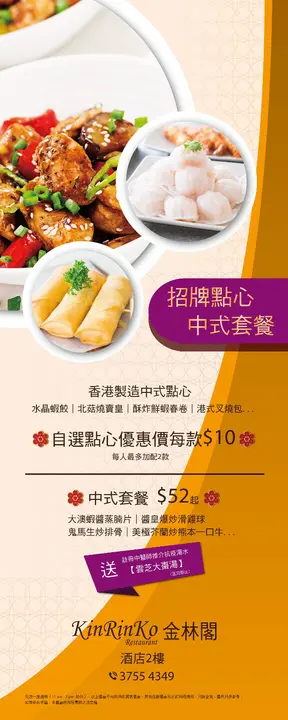 國際美食中午自助餐$118+(星期一至星期日11:00-14:00)海鮮國際美食懐舊音樂自助晚餐$198+(星期六及星期日18:00-21:30)