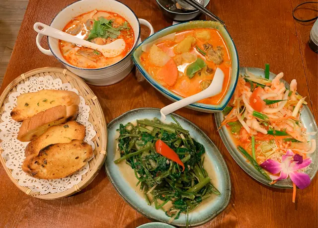 短時間內食咗呢間嘢四次,因為真係好好味,淨係講個冬陰功湯,已經冇得輸。好多地方嘅冬陰功都唔好飲,一係唔夠酸,一係咸到苦,真係咸到苦,一係就硬係爭緊啲唔係嗰陣味。但,呢度飲一啖已經停唔到口,真係惹味香口嘅冬陰功,係泰國飲到嘅味道,好感動。對比之下,椰子雞湯就顯得普普通通,可以不叫。然後就係串燒,啲肉有,又巨又厚,豬頸肉、司華力腸,超級好食,墨丸連蜜糖都燒得香香的好好味。炒金邊粉酸酸甜甜,又大碟,真係冇得彈,好食過好多商場入面嘅餐廳,真係有泰國味。木瓜沙律就辣咗啲,如果冇咁辣就完美。甜品食咗西米糕,中間有粒粟米好得意,但係一碟有好多粒,食唔晒好大嘥。另外仲叫咗芒果糯米飯,超~好~食~以為自己喺泰國~…查看更多