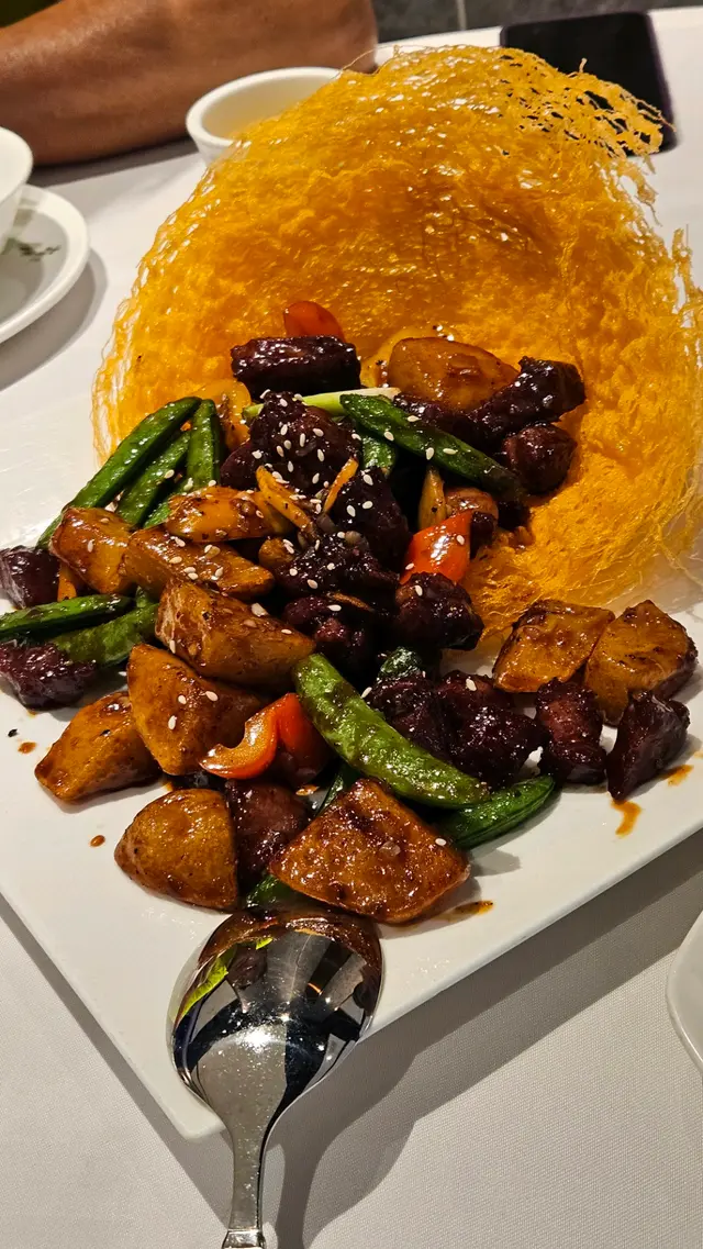 本來特登諗住去『得閑xx』,點知排晒隊,咁鬼熱梗係唔等,行過對面睇吓有乜選擇,結果誤打誤撞入咗呢間~金滿樓。叫咗~香煎蘿蔔糕 窩夫蝦春卷 櫻花蝦金菇牛肉腸 醬皇金錢肚 鳳爪排骨煲仔飯 桂花椰汁糕先嚟係腸粉,一放低睇到薄薄透透嘅「粉皮」,再加上厚厚嘅牛肉,熱辣辣~口感不錯,真係皮薄餡靚。跟著係春卷,首先個春卷皮係有別於其他傳統酒樓或點心店果隻,另外個醬汁,唔係用喼汁,係甜甜哋嘅~我個人覺得有小小似芒果醬,但又出奇地夾。金錢肚,正常味道,黑椒味重。煲仔飯,攪唔清佢夠竟係蒸還是「燒」,反正都ok好味,點解我咁講?因為上次試過煲仔飯有飯焦,但係煮燶晒,今次無飯焦,所以我分唔到。不過如果收$83煲咁小「料」,就有點兒那個。蘿蔔糕~無乜特別,正常水準。飯後甜品,呢個唔錯,清清甜甜,食完有好清新嘅感覺。回頭度5/10下次就算有機會嚟,都唔選擇假期或周六日,因為眼見啲孖寶三寶喺呢啲日子,加好多價上去,簡單啲講~平日平好好多,舉例有個三寶平日128.呢啲日子要加50就真係唔好攪。以上純粹個人食後分享,絶無收取任何報酬或優惠,亦對以上分享,承擔所有責任。…查看更多