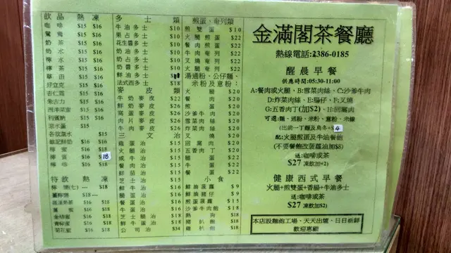 金滿閣茶餐廳 (深水埗) 網址: https://s.openrice.com/QrbS0hKO000 地址: 香港深水埗海壇街223號海生大廈地舖 電話: +852 23860185