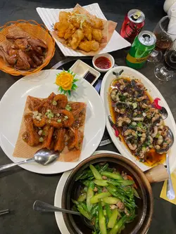 呢晚同朋友一齊嚟咗呢間喺灣仔嘅中菜廳食晚餐,呢度有火鍋食又有小菜食,咁我哋揀咗食小菜🤣未講食之前,呢度嘅老闆同員工都招呼好好,抵讚👍;亦都見到有好多熟客嚟幫襯🤩$168「黃金焗海蝦」:海蝦🦐新鮮大大隻,肉質鮮甜,用薄薄哋嘅脆漿包住,最外邊沾滿鹹蛋黃,食落非常香口美味🤣,仲大大碟有好多隻海蝦🦐可以食🤩$168「脆皮燒雞半隻」:真係冇改錯名,燒雞外皮燒到脆脆哋,雞肉就軟熟好雞味,整體香口好食😋$148「清蒸海鱸魚」:海鱸魚好大條,廚師將魚鎅咗幾刀,咁魚就可以快啲蒸熟,魚肉就更加滑,亦都食得好方便🤣;鱸魚新鮮,魚肉鮮甜,清蒸食到原味同鮮味,仲因為大大條真係有好多魚肉可以食🤣$85「金銀蛋浸時蔬」:揀咗西洋菜,西洋菜新鮮,食落幾爽口,金銀蛋煮味道就濃郁啲啲🤣;仲有,份量勁多,食咁多菜感覺健康啲🤣$168「豉汁蒸白鱔」:白鱔好新鮮,肉質鮮甜,豉汁蒸味道好濃郁,好惹味🤣我哋兩個本來超肚餓,食完呢個美味兼豐富嘅晚餐,碟碟都大大碟,變得兩個都勁飽,超滿足🤣…查看更多