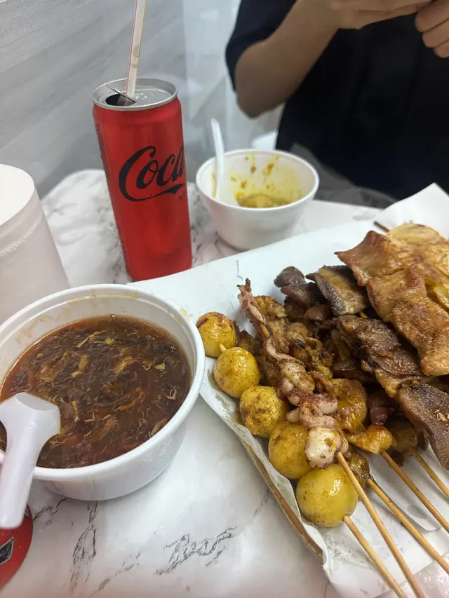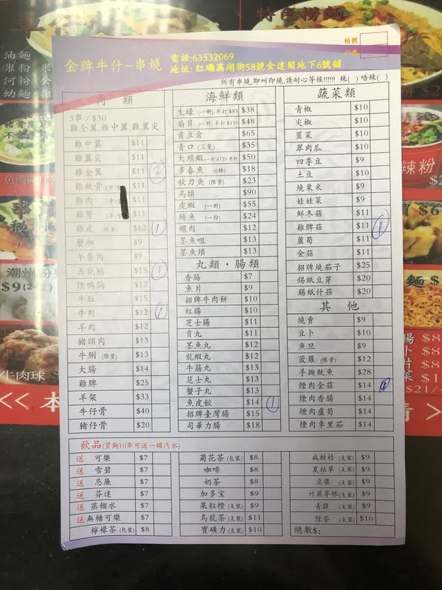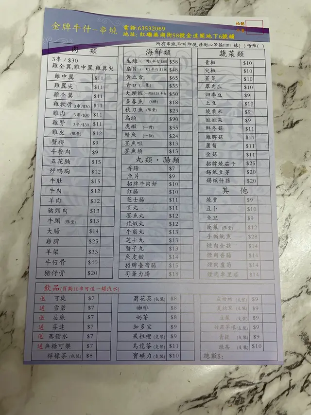 本身諗住去黃埔有一間好出名嘅串燒舖頭,但因為嗰間舖頭實在太多人排隊,於是我哋去咗佢附近另一間。自己對比兩張餐單嚟講覺得金牌牛雜嘅種類比較多,當中竟然仲有$10.8粒魚蛋!除此之外,仲有碗仔翅,車仔麵等等。講返入面環境,入面呢就唔算大,但係呢志在有冷氣! 如果夏天想食串燒同朋友傾吓偈,我覺得呢個地方都唔錯👍講返食物嘅質素啦,咁整體普普通通,佢呢就一次過消好晒上枱嘅,咁樣呢就變相有機會後尾食到嗰啲串燒已經攤凍咗,但係呢個我諗都冇辦法,始終香港好多舖頭都講求效率。…查看更多