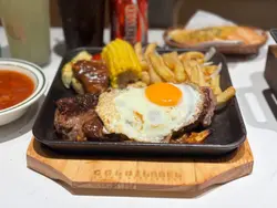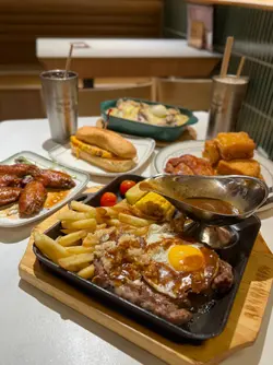 .好鍾意港式濃厚嘅茶餐廳🍴金牌果然冇改錯🏆 好多食物都係王牌.🌟 鐵板瀑布芝士漢堡餐 $98 🧀🍔呢個真係要大推 超級特別 視覺效果滿分💯芝士如瀑布甘 份量超多 🧀🧀🧀漢堡🍔肉汁豐富 搭配鐵板 滋味濃郁 餐廳好貼心已經將漢堡包切開咗一半 🍔鐵板開住火 保證漢堡包同芝士都熱辣辣 ♨️食完仲可以將薯條點芝士🫕🍟邪惡非常😈但真好正🥰.🌟 鐵板鴛鴦扒加法蘭克福腸🥩🌭 $88份量十足 有大大塊雞扒同豬扒🐔🐽性價比高 一次過滿足食肉獸的願望😈腸仔煎得香口 黑椒汁夠哂惹味伴隨住鐵板滋滋聲🔉💥真心好正.🌟 蜜釀🍯鎮江骨 $68鎮江醋的酸甜與蜜糖的溫潤完美結合💯排骨燜得軟腍入味 非常開胃的小菜估唔到茶記可以將小菜都做得咁出色😱😱.🌟 蘑菇忌廉汁海鮮焗飯🍚 $65我真心鍾意呢個💛焗飯夠熱辣♨️ 忌廉汁香滑濃厚海鮮料足 有蝦🦐有帶子有魷魚🦑有🍄🟫飯粒吸滿汁醬 口感豐富有層次.🌟 鹹牛肉牛乳炒蛋潛艇 🥩 🥖$36鹹牛肉鹹香配搭嫩滑的牛乳炒蛋🍳👏🏿👏🏿.🌟 粒粒金磚西多士 $30外脆內軟 一口一粒剛剛好煉奶與牛油份量恰到好處不會過甜 邪惡但滿足😈🥰.一間高質抵食的港式西餐茶記菜式有創意且份量慷慨🔆🔆由主餐到小食都無失望🧡難怪幾時都咁多人👯♀️👯♀️一定會encore👏🏿‼️.@goldlabelrestaurant📍九龍灣牛頭角道77號淘大商場3期地下G266-270號舖…查看更多