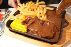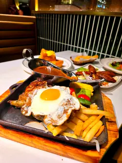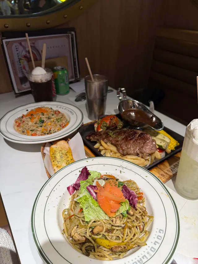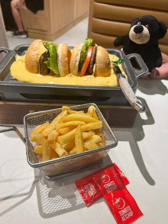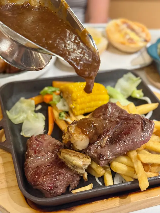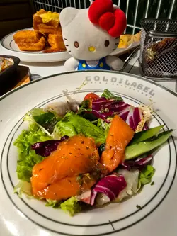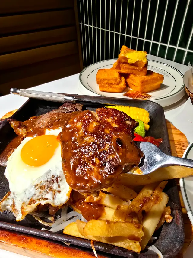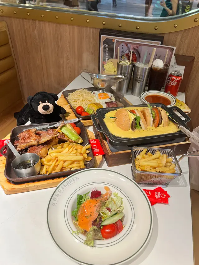 .好鍾意港式濃厚嘅茶餐廳🍴金牌果然冇改錯🏆 好多食物都係王牌.🌟 鐵板瀑布芝士漢堡餐 $98 🧀🍔呢個真係要大推 超級特別 視覺效果滿分💯芝士如瀑布甘 份量超多 🧀🧀🧀漢堡🍔肉汁豐富 搭配鐵板 滋味濃郁 餐廳好貼心已經將漢堡包切開咗一半 🍔鐵板開住火 保證漢堡包同芝士都熱辣辣 ♨️食完仲可以將薯條點芝士🫕🍟邪惡非常😈但真好正🥰.🌟 鐵板鴛鴦扒加法蘭克福腸🥩🌭 $88份量十足 有大大塊雞扒同豬扒🐔🐽性價比高 一次過滿足食肉獸的願望😈腸仔煎得香口 黑椒汁夠哂惹味伴隨住鐵板滋滋聲🔉💥真心好正.🌟 蜜釀🍯鎮江骨 $68鎮江醋的酸甜與蜜糖的溫潤完美結合💯排骨燜得軟腍入味 非常開胃的小菜估唔到茶記可以將小菜都做得咁出色😱😱.🌟 蘑菇忌廉汁海鮮焗飯🍚 $65我真心鍾意呢個💛焗飯夠熱辣♨️ 忌廉汁香滑濃厚海鮮料足 有蝦🦐有帶子有魷魚🦑有🍄🟫飯粒吸滿汁醬 口感豐富有層次.🌟 鹹牛肉牛乳炒蛋潛艇 🥩 🥖$36鹹牛肉鹹香配搭嫩滑的牛乳炒蛋🍳👏🏿👏🏿.🌟 粒粒金磚西多士 $30外脆內軟 一口一粒剛剛好煉奶與牛油份量恰到好處不會過甜 邪惡但滿足😈🥰.一間高質抵食的港式西餐茶記菜式有創意且份量慷慨🔆🔆由主餐到小食都無失望🧡難怪幾時都咁多人👯♀️👯♀️一定會encore👏🏿‼️.@goldlabelrestaurant📍九龍灣牛頭角道77號淘大商場3期地下G266-270號舖…查看更多