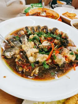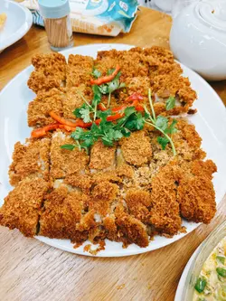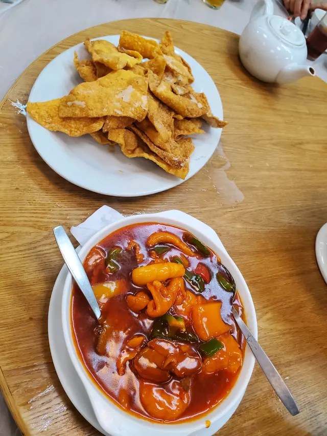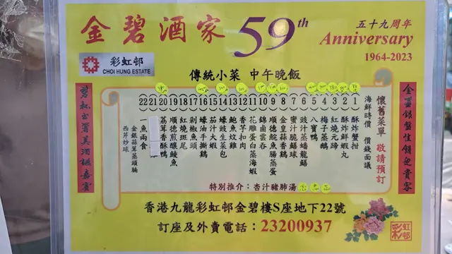 小時候在這個屋邨長大當時經常到這間酒家食午飯食嘅都係碟頭飯例如楊州炒飯,肉絲炒麵 。芙蓉蛋飯屋邨預計今年清拆 。現在回來要預訂晚餐懷舊一番預先訂下一席菜12位用菜單:杏汁豬肺湯(大)酥炸蟹鉗12 只八寶鴨茄汁大蝦12只豉汁蒸蟠龍鱔香芋扣肉錦鹵雲吞蒜子芥菜膽椒鹽鮮魷查看更多