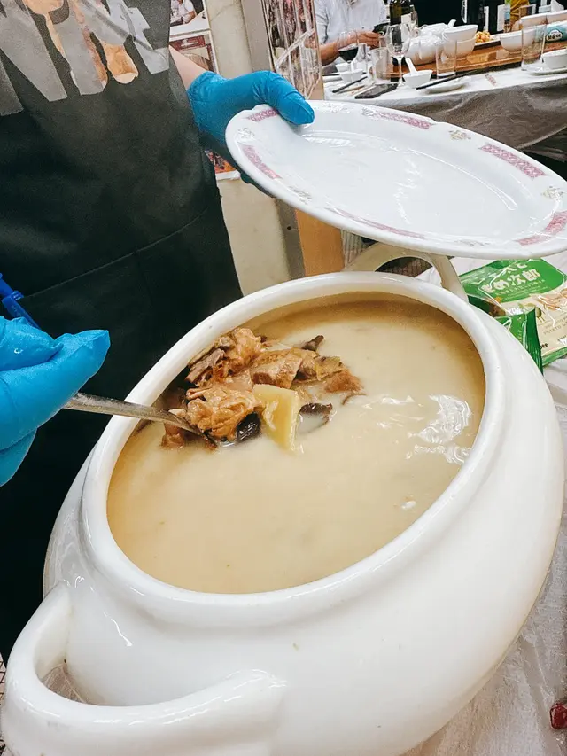 早排跑班有同學發起,組團去彩虹邨金碧酒樓食飯,為食既我當然即刻報名🤪當晚菜單:1 杏汁豬肺湯2 錦鹵雲吞3 馳名叉燒4 蠔油手撕雞5 生炒骨6 魚腸蒸蛋7 炸蟹鉗8 荔芋香酥鴨9 蟠龍鱔10 香芋扣肉11 紅燒元蹄12 鮑魚炆雞13 豉油王炒麵14 上湯菜心15 馬拉糕當晚book左6點半,人數22人所以分開兩圍,早到左既同學(包括我😎)已經開始品嘗同學自家浸製既梅酒😂(免收開瓶費)大約7點人齊,先上杏汁豬肺湯,豬肺洗得乾淨冇異味,湯水飲出係老火湯,帶有濃厚杏汁味道,十分鮮甜👍🏻之後開始上第一道菜錦鹵雲吞,錦鹵雲吞係傳統果種,雲吞內無餡但雲吞皮炸得香脆,另外既甜酸汁同配料味道恰到好處,十分開胃👍🏻第二道菜係馳名叉燒,叉燒肥瘦適中,唔會燒得太燶同韌,味道唔會太咸或者太甜,鍾意食叉燒既我當然食左唔少🤭第三至五道菜係蠔油手撕雞、生炒骨同魚腸蒸蛋,哩三道菜雖然難度唔高,但都係下飯菜,送酒一流👍🏻魚腸蒸蛋更加係”秒清”🤣相都未影到已經清晒🙈第六道菜係炸蟹鉗,炸蟹鉗外層炸得鬆脆,但口感較為結實,冇平時酒樓飲宴咁彈牙(可能係配料問題🤔),略為失色。之後幾道菜都係大家期待既菜式,第七道菜係荔芋香酥鴨,香酥鴨外表炸得鬆脆,芋蓉粉糯香軟,鴨件肉質鮮嫩,冇令我地失望👍🏻不過食完哩道菜已經開始有少少飽🤣好攪笑地,上菜既時候,唔知點解會各有支幼蠟燭插左喺兩碟香酥鴨上面,而咁岩我之後一個星期生日,所以個個唱晒生日歌🤣第八道菜係蟠龍鱔,白鱔蒸得岩岩好,冇over cook,鱔肉香滑,豉汁更加帶出鱔既鮮味👍🏻連我本身唔嗜食鱔既都覺得好味👍🏻😋隔籬枱見到都叫我地俾碟盤龍鱔佢影相📸🤣(佢話佢果枱叫左脆鱔球,有啲後悔🥲)第九道菜係香芋扣肉,扣肉煮得好腍,肥豬肉入口即化,芋頭一樣都係粉糯香軟,底下既黃芽白吸收晒扣肉同芋頭既精華🤩不過因為要留肚應付之後未上既菜式,所以唯有忍口淨係食兩舊就收手🥹第十道菜係紅燒元蹄,元蹄軟糯入味,肥但係唔膩,入口鬆軟,食到濃厚既膠原口感,肉汁亦都被底下既生菜完全吸收👍🏻第十一道菜係鮑魚炆雞,鮑魚炆得入味,口感彈牙唔會好韌;雞肉炆得岩岩好唔會過火,吸收鮑魚蠔汁精華,自己都忍唔住食多幾舊😂最後既係豉油王炒麵同上湯菜心,炒麵炒得夠乾爽唔會過油,又係被”秒清”🤣相都未影就清晒🙈菜心用既應該係菜心苗,用上湯灼得岩岩好,鮮甜爽口,食左咁多肉用黎清一清,吸收返啲纖維岩晒👍🏻上晒所有菜式,最後(真係最後😂)甜品係馬拉糕,馬拉糕鬆軟有彈性,唔會太甜,如果加返啲欖仁口感會更豐富👍🏻不過因為成晚食得太飽,所以都只係食到少少😅另外唔知同學係咪當左個馬拉糕係蛋糕,所以又唱多次生日歌🤣唱完生日歌,事頭(應該係🤔)唔知係咪俾我地攪到hihi地,突然開咪唱黎明首”我的親愛”,每當唱到chorus,即刻全場一齊” Sayonara o Sayonara o…” 當事頭唱完之後,我地又接咪唱左兩首,最後連事頭婆都唱埋一份😂(其實事頭婆冇傳聞中咁串/難相與…)即時全場氣氛去到極點🥳不過當晚全場最嘈都係我地兩檯,有啲食客都對我地側目,真係有啲唔好意思🙇🏻‍♂️走既時候見到廚房師傅、企堂坐低食飯。原來佢地都有返咁上下年紀,真心respect佢地🫡經過中學母校,諗返21年前喺度中五畢業,當時金碧酒樓都係一間唔顯眼既屋邨舊式酒樓,每日會開埋早、午茶市,酒樓出面仲有檔報紙檔,午飯時間都只會有老師去果度食飯,而我地就只會喺附近食燒味飯,燒味檔而家都已經拆左lu…(叫老友記)。而家因為彩虹邨要重建,令到金碧酒樓曝光出左名,先有咁多人book檯食飯(仲要好耐之前book),自己中學母校新校舍都未有消息,牛池灣寮屋區都將要遷拆重建(好多好野食),都真係有啲唏噓😮‍💨希望哩啲舊式老店、手工、情懷都可以傳承、延續落去啦🙏🏻🫂查看更多