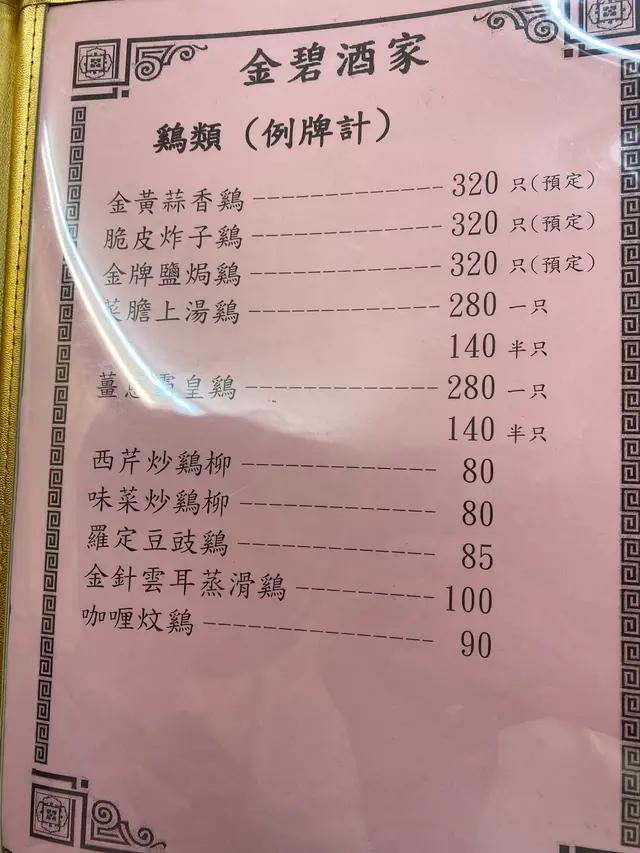 經過漫長既等待,終於book到食懷舊手工菜既金碧酒家!聽朋友講成年前已經開始book,但店家可能太忙一直無回覆,直到早幾個月前終於成功book到!手工菜係需要提早預訂,唔預訂係無得即場叫架~.豉汁蟠龍鱔上台時係一整條鱔無斷開,豉汁浸入每一件鱔片,上台後職員會用剪刀將繕骨剪斷,方便食用,鱔肉香滑火喉掌握得好無over cook .鯇魚魚腸蒸蛋蛋蒸得好滑,魚腸入口綿密入面有薑絲.錦鹵雲吞錦鹵雲吞做法傳統,雲吞皮炸得香脆配上甜酸菠蘿汁好開胃.剁椒魚頭魚頭肉質鮮嫩,搭配剁椒的脆爽,口感層次分明,剁椒既辣味恰到好處,好適合搭配白飯.荔芋香酥鴨香酥鴨外表炸得鬆脆,芋頭粉糯香軟,鴨肉肉質鮮嫩,最重要係鴨肉去唒骨,每啖都食到鴨皮既脆,鴨肉既嫩同芋頭既粉糯,口感豐富,好食啊!.花雕蛋白蒸海蝦份量大超級多蝦~蛋白配上酒呢個配搭幾夾,蛋白蒸出黎超香超滑,蝦肉新鮮又彈牙.杏汁豬肺湯個湯有果皮香,杏仁味唔算太勁,岩唒想飲又怕杏仁味既朋友.椒鹽鮮魷炸粉唔厚,薄薄一層,魷魚炸得香脆.聽朋友講馬拉糕係必食,但我哋無預定無得立即order,好好彩個日有朋友既朋友甘岩又係個到食,讓左件馬拉糕比我哋試!馬拉糕鬆軟但係可能我哋太高期望,未去到係必食😂.查看更多