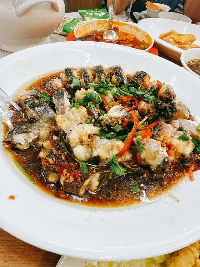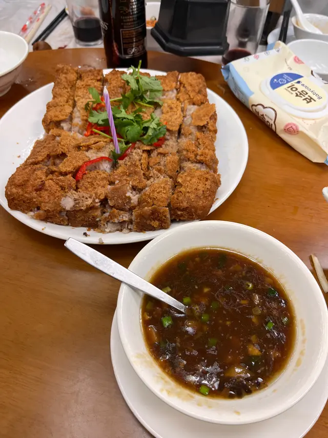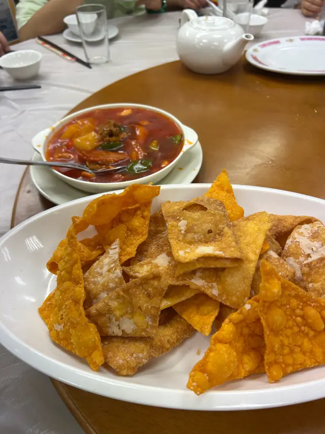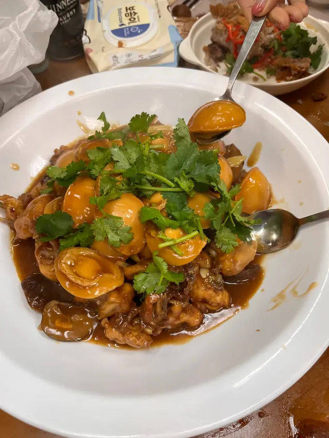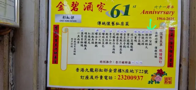 經過漫長既等待,終於book到食懷舊手工菜既金碧酒家!聽朋友講成年前已經開始book,但店家可能太忙一直無回覆,直到早幾個月前終於成功book到!手工菜係需要提早預訂,唔預訂係無得即場叫架~.豉汁蟠龍鱔上台時係一整條鱔無斷開,豉汁浸入每一件鱔片,上台後職員會用剪刀將繕骨剪斷,方便食用,鱔肉香滑火喉掌握得好無over cook .鯇魚魚腸蒸蛋蛋蒸得好滑,魚腸入口綿密入面有薑絲.錦鹵雲吞錦鹵雲吞做法傳統,雲吞皮炸得香脆配上甜酸菠蘿汁好開胃.剁椒魚頭魚頭肉質鮮嫩,搭配剁椒的脆爽,口感層次分明,剁椒既辣味恰到好處,好適合搭配白飯.荔芋香酥鴨香酥鴨外表炸得鬆脆,芋頭粉糯香軟,鴨肉肉質鮮嫩,最重要係鴨肉去唒骨,每啖都食到鴨皮既脆,鴨肉既嫩同芋頭既粉糯,口感豐富,好食啊!.花雕蛋白蒸海蝦份量大超級多蝦~蛋白配上酒呢個配搭幾夾,蛋白蒸出黎超香超滑,蝦肉新鮮又彈牙.杏汁豬肺湯個湯有果皮香,杏仁味唔算太勁,岩唒想飲又怕杏仁味既朋友.椒鹽鮮魷炸粉唔厚,薄薄一層,魷魚炸得香脆.聽朋友講馬拉糕係必食,但我哋無預定無得立即order,好好彩個日有朋友既朋友甘岩又係個到食,讓左件馬拉糕比我哋試!馬拉糕鬆軟但係可能我哋太高期望,未去到係必食😂.…查看更多
