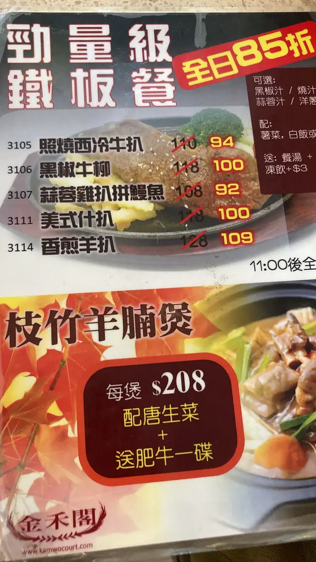 這間餐廳幫襯多次,每次都係光顧晚餐,餐牌上有3款2人餐,薑蔥霸王雞/清蒸蒼魚(可轉豉汁)配一款小菜或者兩者都有+兩款小菜,每個套餐附送例湯&清湯時蔬,仲有野飲添。1. 薑蔥霸王雞(半隻):連雞胸都好滑嫩幾好食,個豉油汁仲可以撈飯。2. 枝竹火腩煲:枝竹有8塊,火腩都有咁多,汁就稍濃,要送飯。3. 清湯時蔬:通常都係菜心,遇過一次係唐生菜。4. 餐湯:有2款...中(老火湯) / 西(羅宋湯含有牛肉)送熱飲,凍飲要加錢。服務生主要為老人家,感覺有點似銀杏館,服務態度很好,只收現金,不收任何電子支付。…查看更多