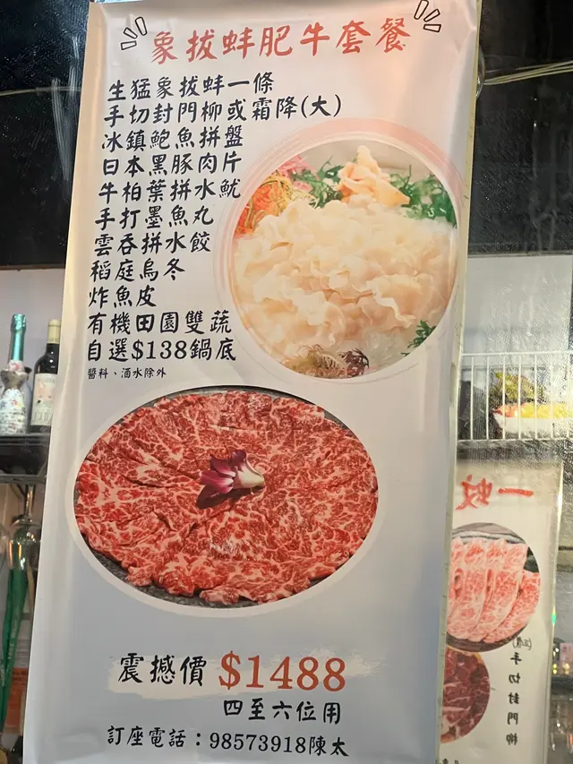 隱世火鍋店火鍋湯底太特別,勁抵食海鮮套餐食物有救新鮮老闆又好人,呢個生拆蟹肉海鮮鍋真係勁特別,用腐竹包住海鮮成個福袋咁,淨係睇呢個湯底都夠哂噱頭。個套餐仲有象拔蚌刺身,好鮮甜。手切封門牛柳,你睇下啲肉質幾鮮嫩。養顏花膠,花膠真係好厚身。仲有埋原隻鮑魚,特大嘅元貝,生蠔,手打墨魚丸,同埋師傅手工包嘅水餃,雲吞,烏冬同菜當然都唔少得啦。呢個價錢咁多嘢食真係三個人都夠食,仲可以豪食海鮮,真係冇去錯地方呀。