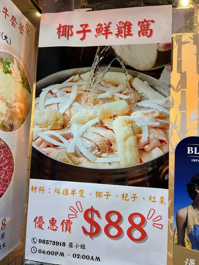 營業至凌晨的港式火鍋店,湯底提供養生、香辣等口味,而火鍋配料逾70款,另有刺身、小菜供應,選擇多元化。