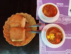 今晚想食西餐, 上openrice周圍search下, 見到依度食評唔錯, 環境裝修幾特別👍, 望下餐牌, 有d選擇困難, 最後友人為我揀左羊膝腿🐏, 佢自己要晚餐~巨人什扒🐔🐮🐽🍳🥓餐, 要左二個忌廉湯, 隔一陣送來二個餐湯和餐包, 忌廉湯夠晒cream👍味道唔錯, 唔會一d味都無, 餐包暖暖地, 加牛油好食😃, 友人的晚餐包一個沙律, 都唔係少👍👍, 試左一口味道唔錯, 再之後送來二個主角, 鐵板上夠晒儀式感🥳, 我哋加左2元再加d蒜蓉🧄, 之後店員拿左二兜汁問我哋要乜嘢, 我就揀左黑椒, 友人揀另外一款😋👍, 之後我切件羊膝肉, 非常淋😋, 不過係我自己唔係好識切🤣, 食一口, 超級好食💯唔會有羊so味, 食到入面肉汁都好juicy😍, 份量對我來講都好足夠, 不過我都好似有見到人加d小食, 或者飯同意粉, 之後店員送上二個啫喱, 依個就麻麻地, 太甜同希得滯😆, 再之後叫左凍0🍋茶走甜, 味道唔錯, 飲落唔會苦, 有茶香味😘, 日後想再食扒, 我都會第一時間諗起依度, 夠抵食價錢相宜店員服務有禮, 環境有懷舊風味, 值得再去😁🫶👍…查看更多