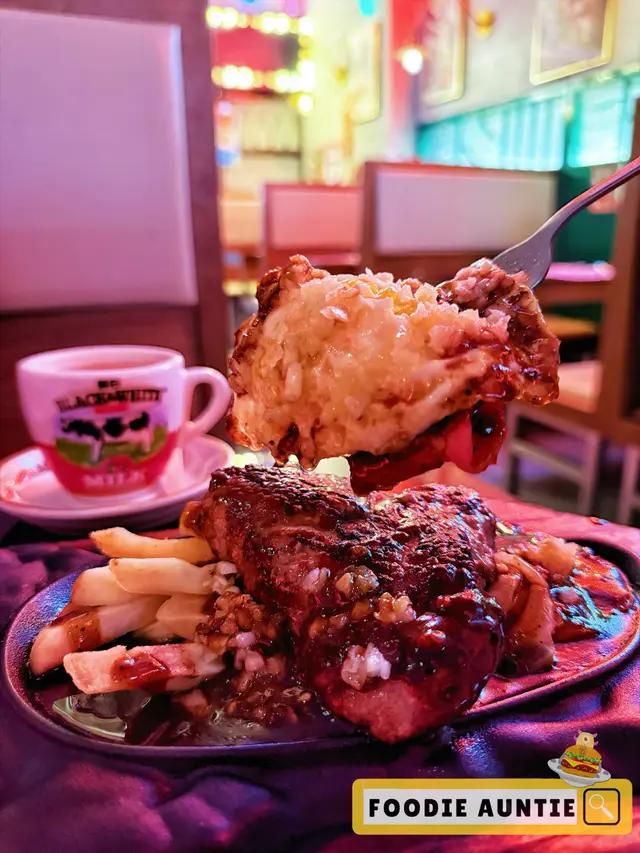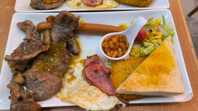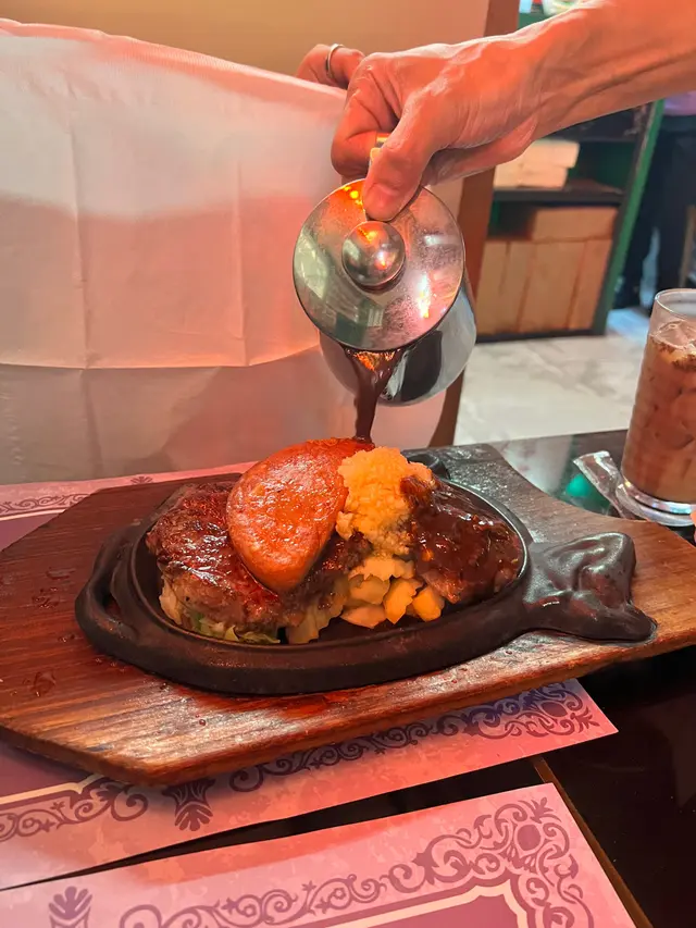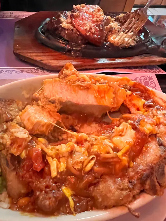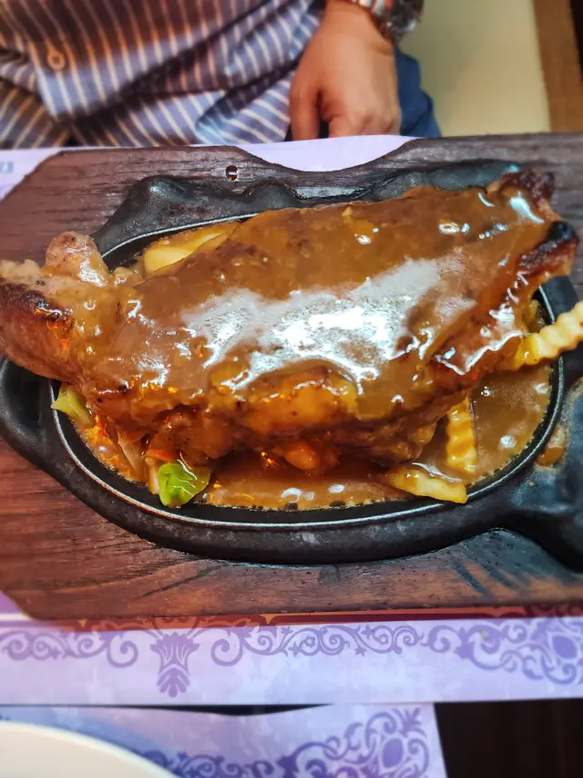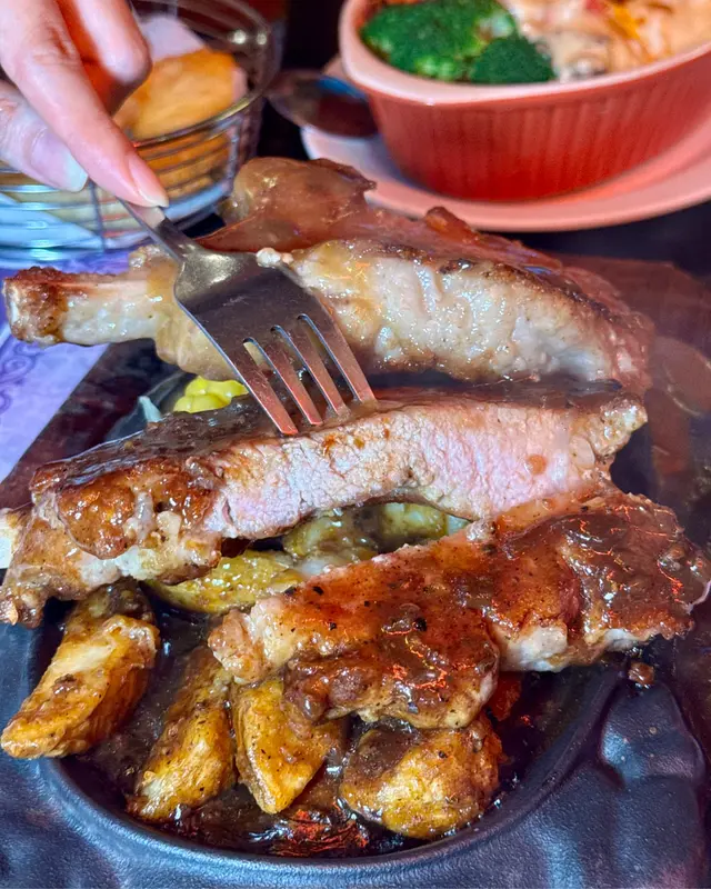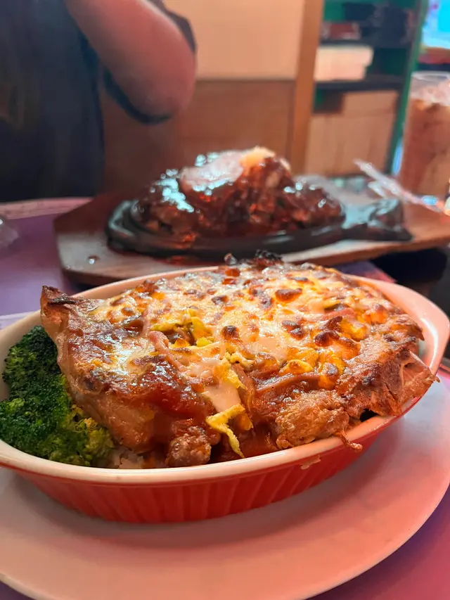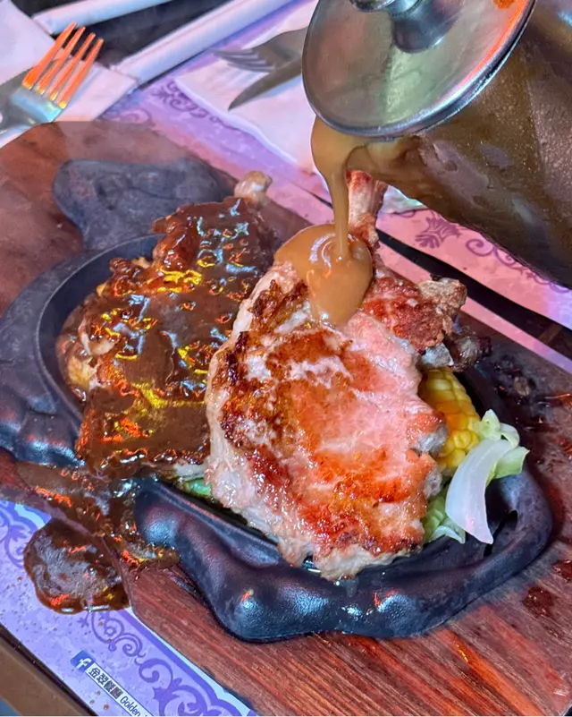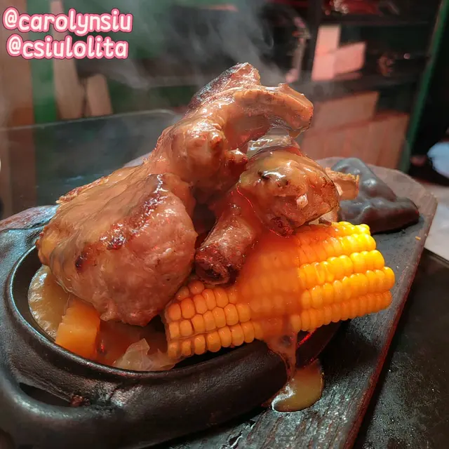 今晚想食西餐, 上openrice周圍search下, 見到依度食評唔錯, 環境裝修幾特別👍, 望下餐牌, 有d選擇困難, 最後友人為我揀左羊膝腿🐏, 佢自己要晚餐~巨人什扒🐔🐮🐽🍳🥓餐, 要左二個忌廉湯, 隔一陣送來二個餐湯和餐包, 忌廉湯夠晒cream👍味道唔錯, 唔會一d味都無, 餐包暖暖地, 加牛油好食😃, 友人的晚餐包一個沙律, 都唔係少👍👍, 試左一口味道唔錯, 再之後送來二個主角, 鐵板上夠晒儀式感🥳, 我哋加左2元再加d蒜蓉🧄, 之後店員拿左二兜汁問我哋要乜嘢, 我就揀左黑椒, 友人揀另外一款😋👍, 之後我切件羊膝肉, 非常淋😋, 不過係我自己唔係好識切🤣, 食一口, 超級好食💯唔會有羊so味, 食到入面肉汁都好juicy😍, 份量對我來講都好足夠, 不過我都好似有見到人加d小食, 或者飯同意粉, 之後店員送上二個啫喱, 依個就麻麻地, 太甜同希得滯😆, 再之後叫左凍0🍋茶走甜, 味道唔錯, 飲落唔會苦, 有茶香味😘, 日後想再食扒, 我都會第一時間諗起依度, 夠抵食價錢相宜店員服務有禮, 環境有懷舊風味, 值得再去😁🫶👍…查看更多