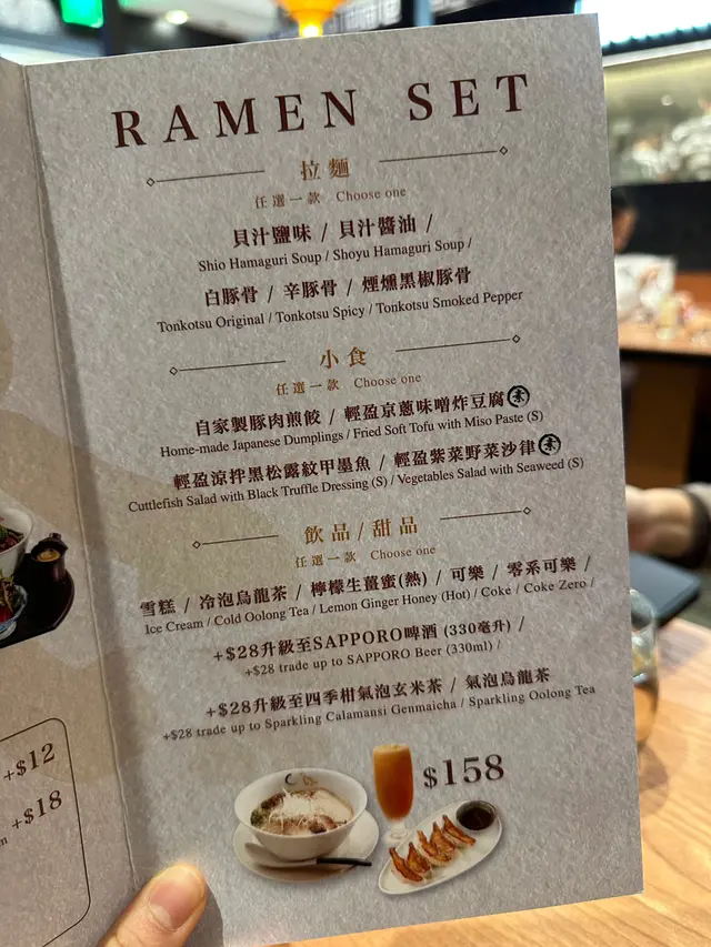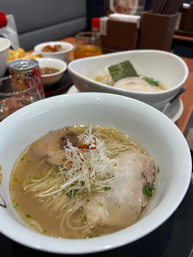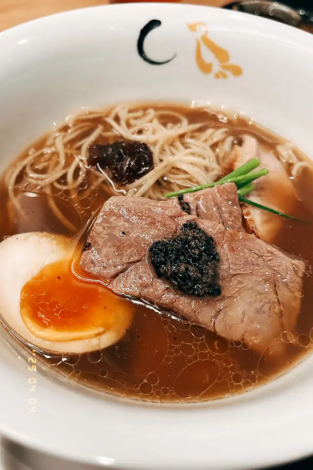 之前在中環IFC有吃過日本東京知名的米芝蓮一星拉麵品牌,「金色不如帰」 現在在黃竹坑 THE SOUTHSIDE 也有分店囉。平日午市時間有拉麵套餐,包括主食+小食+飲品。🍜貝汁鹽味拉麵 (HKD 158)鹽味湯底很清爽,喝起來濃郁又不油膩,亦能喝到蛤蜊的鮮味。這拉麵加了白松露油和牛肝菌醬,所以甜味也較突出。麵條則是中細身的直麵,口感頗有咬勁和有一種小麥香。低溫叉燒肥瘦適中,吃落柔嫩不柴。小食選了輕盈涼拌黑松露紋甲墨魚🦑 黑松露的味道頗濃,墨魚口感彈牙,還吃到芥末的味道。🍜煙燻黑椒豚骨拉麵 (HKD 158)相對前者的湯底會惹味點,多了一份煙燻香與黑胡椒香氣。這款推薦給喜歡「重口味派」的拉麵愛好者。小食選了自家製豚肉煎餃子🥟 煎得幾香,不過就稍為油了一點﹐豚肉餡都頗多汁的。飲品則有冷熱飲品可選,像是熱檸生薑蜜、冷泡烏龍茶。查看更多