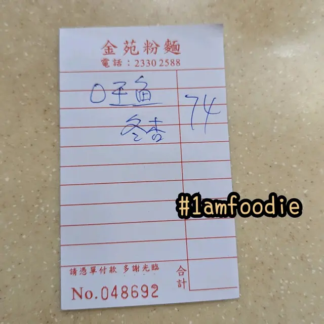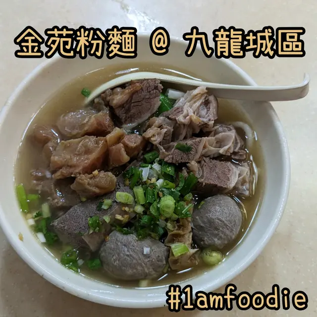 【九龍城區】【金苑粉麵】 1amfoodie等級42023-06-01463 瀏覽 關注 【九龍城區】【金苑粉麵】之前行過土瓜灣,都係為咗搵賣兩餸飯畀遊客而上咗報紙嘅港明美食,結果佢嘅性價比都唔錯,令我眼前一亮。咁我作為一個八卦精,行過呢頭當然就碌埋附近嗰幾條街,睇吓有冇其他嘢好食。碌吓碌吓,就見到呢間嘢。咁我誠然唔會癲到食完個兩餸飯然後再去食粉麵啦,我係之後再有機會去嗰頭先去食埋嘅。個招牌係黑底金字寫住「金苑粉麵」咁啦,另外旁邊就寫住牛丸、牛雜。所以我入去就想食呢兩樣嘢,盡量唔使叫兩碗嘢就最好啦。咁我就叫咗「牛魔王牛丸魚麵」,牛魔王係一個餸,牛丸係一個餸,雙拼轉魚麵,一流。所謂牛魔王即係牛雜、牛腩、牛筋,都幾好喎,一次過食晒呢三樣嘢。不過質素方面就唔算話好突出咁,普普通通,冇咩值得提起。反而另外拼嘅嗰個牛丸,雖然得三粒,但係入口彈牙,牛味又香,幾正。魚麵就爭啲魚味,我唔係太建議喺度食。嘢飲我揀咗「凍杏仁霜」嚟飲,又整得幾濃幾好飲,哈哈。夾埋食咗 $74,本身牛魔王同魚麵都唔係平吖嘛。。。(地址:土瓜灣土瓜灣道253號東興大廈地舖)#1amfoodie #foodie #hkfoodie #thatfoodiething #hkfood #food #instafood #yummy #foodlover #delicious #foodies #tasty #globaleats #tastyfood #foodpics #followforfollowback #love #eat #1am九龍城區 #土瓜灣 #金苑粉麵 #牛魔王牛丸魚麵 #牛雜 #牛腩 #牛筋 #牛丸 #杏仁霜 #1am1027 #1ambackup…查看更多+ 4以上食評乃用戶個人意見 , 並不代表OpenRice之觀點。讚好分享【九龍城區】【金苑粉麵】 金苑粉麵 https://s.openrice.com/QrbT0GUD900檢舉 張貼 評分3味道3環境3服務3衛生3抵食用餐途徑堂食