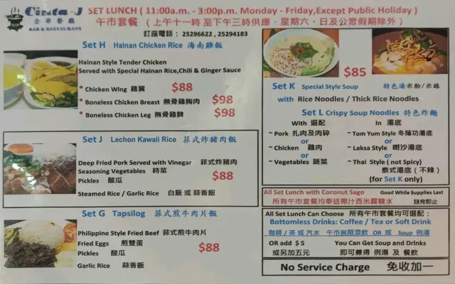 今日經過灣仔,見到有呢間菲律賓餐廳,就入去試下,入面個裝修好似一間bar咁,有個stage,估計應該夜晚係bar,晏晝就做餐廳,裝修都幾有特色,同埋安排咗卡位都幾舒服。啲waitress都幾有禮貌,應該全部係菲律賓人,我就點咗一個海南雞飯,本身想嗌雞髀 但係佢話雞髀賣曬,所以最後就叫咗雞胸, 但係因為我唔食油飯所以叫咗個白飯,上到枱發現其實雞胸都幾多,食完仲有西米露糖水送,不過個糖水純粹只係椰汁加d西米,所以冇咩特別。🙃…查看更多