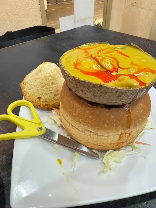 用左原個椰青熬煮出黎既黃咖喱雞肉滑嫩, 最驚喜係個椰肉, 開頭咬落去以為係洋蔥, 點知原來係椰肉, 好清甜咖喱香濃幼滑帶小小微辣香法包外脆內軟, 咬落去嗦嗦聲浸落去咖哩度一齊食, 最後不經意就食哂成個法包最後叫埋龍眼冰同青檸梳打透心涼之選…查看更多