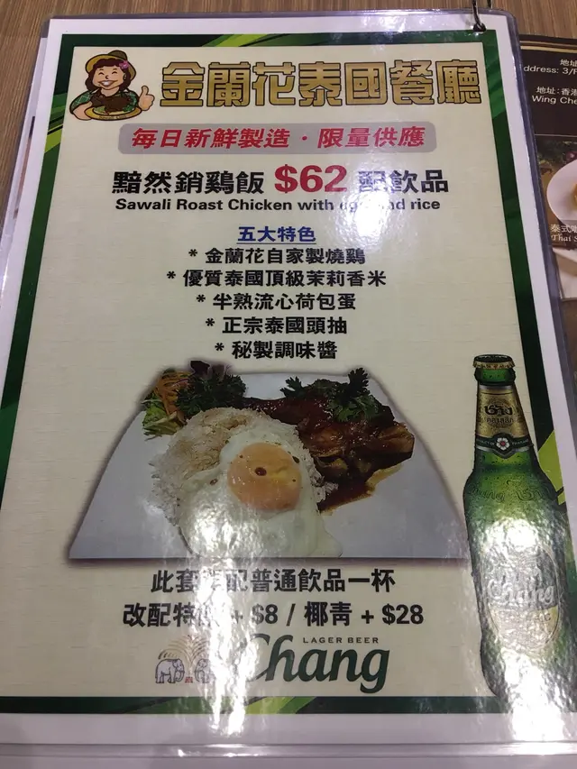 金蘭花泰國餐廳 (銅鑼灣) 網址: https://s.openrice.com/QrbS0nDK700 地址: 香港銅鑼灣怡和街22號3樓 電話: +852 29700688