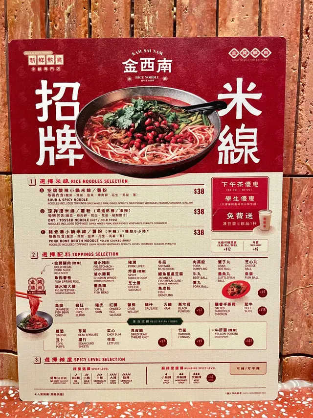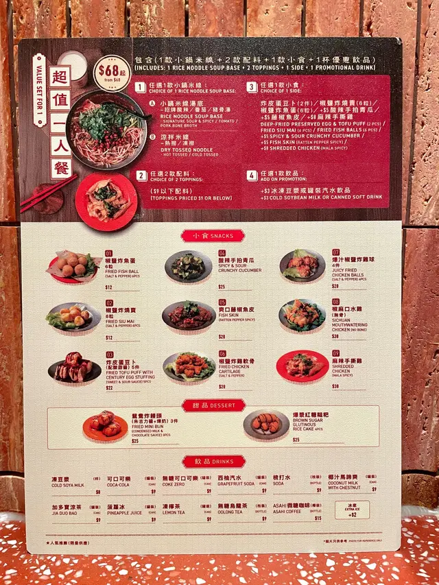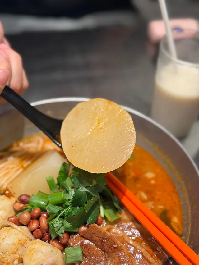 新開的旺角店,新裝修坐得好舒服,星期六晚人流都好多,但係流轉得好快,都唔洗等位而且店舖職員,應該係經理,勁有禮貌,好好笑容,對每位客人都有關心! 食落都開心D~🥢酸辣小鍋米線 – 1人餐- 金獎腩肉+紅蘿蔔粟米魚蛋+鹽香手撕雞湯底色澤橙紅,酸辣香氣撲鼻,米線滑溜彈牙,吸曬湯底嘅精華,每一啖都夠晒惹味金獎腩肉肥瘦分明,肉香同湯底嘅酸辣味好夾鹽香手撕雞肉質細嫩,鹹香入味,雞味濃郁,咬落去又唔會乾柴,配埋酸辣湯底更加突出雞肉鮮味🥢椒鹽炸魚蛋粒粒圓渾飽滿,魚蛋彈牙多汁。外層灑上椒鹽同少少辣椒粒,鹹香帶辣,食到尾口都唔會覺得膩🥢自選酸辣小鍋米線- 金獎腩肉+芫荽魚蛋+冬菇芫荽魚蛋加入新鮮芫荽,魚蛋帶住淡淡草香,食落更加有層次感🥢炸皮蛋豆卜 – 配甜酸醬外皮酥脆金黃,夾住咸香嘅皮蛋,皮蛋煙韌,味道濃郁,配埋豆卜嘅軟綿,層次分明,點埋甜酸醬,酸甜開胃,完美中和咗皮蛋嘅鹹香🥢爆漿紅糖糍粑賣相精緻,外層炸到微微金黃,咬落去外脆內糯,黏糯煙韌。糍粑入面夾住濃郁紅糖漿,一咬開紅糖即刻流出,香甜軟糯,唔會太膩…查看更多
