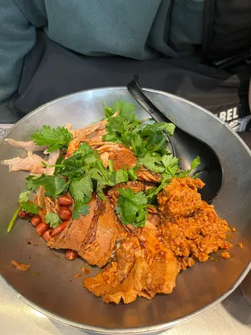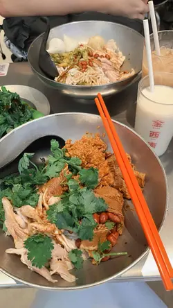 假日同素食朋友同行, 搵食又係一種挑戰, 今次揀咗呢間位於銅鑼灣登龍街嘅「金西南米線」, 呢間米線配料選擇多, 而且仲有素湯同埋素食配菜, 肉食者跟素食者同行, 都能滿足。小店面積不大, 座位比較窄, 不過簡單食個米線, 感覺還可接受。下午兩點半起, order米線, 仲有豆漿/汽水送。而且每碗米線嘅配菜都可以自選多少, 什至走, 滿足不同人口味。我揀咗招牌小鍋米線, 自選了小辣, 配料自選了: 鹵大腸、墨魚頭、鹽香手絲雞、雪花肥牛大大碗米線, 泥黃色湯底, 味道酸辣濃郁; 米線軟淋又滑, 連湯底入口, 酸辣惹味又開胃; 鹵大腸冇異味, 煙韌彈牙有咬口; 墨魚頭爽脆, 鹽香手絲雞不算嫩, 有d乾身; 肥牛稍吸了湯汁, 同樣美味。朋友同樣order了招牌小窩米線, 自選素湯唔辣, 配料自選了: 竹笙、蘿蔔、豆卜、腐竹、豆皮結、豆卜、豆皮結、竹笙同埋腐皮都吸晒啲湯汁, 夠晒入味。米線下午茶仲送嘅豆漿, 豆味突出不會過甜。藤椒魚皮: 口感超爽脆, 麻辣開胃。炸燒賣: 外脆內煙韌, 表面加咗少少鹽調味。黃金炸素春卷: 外皮炸到脆卜卜、熱辣辣, 入邊好多蔬菜, 脆口有層次。油菜: 生菜新鮮, 正常水準。…查看更多