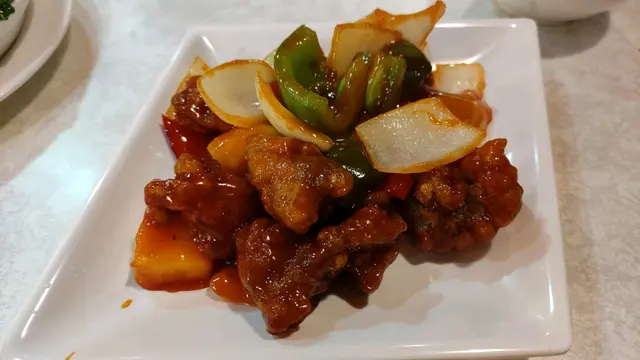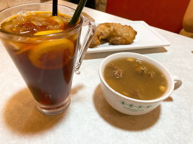 夜晚嚟到銅鑼灣,見到呢間冰室裝修有舊香港冰室嘅感覺,就入咗去試吓,影相打卡幾唔錯嘅🤣後尾先知呢間冰室好多分店,連機場都有😂太多分別唔特別tag了,港九新界都有🥲🍴新鮮菠蘿咕嚕肉 $80 +$15轉套餐包湯同嘢飲 (7.5/10)個肉炸過,外脆內軟,肉質偏瘦有口感,唔會韌,炸得唔乾,酸酸甜甜好開胃,加埋洋蔥菠蘿青椒真係好香口,都幾唔錯,不過價錢就偏貴咗啲🤣🍴鐵板西冷牛扒 黑椒汁 $108 (3/10)睇個賣相唔錯,牛扒都非常厚切,但個口感就好失望,切嘅時候已經知個牛扒好硬😂牛扒食過冇牛肉味,非常硬身,好難咬,勁韌,食咗兩啖放棄咗,不過都佢冇用鬆肉粉,都冇其他醃嘅怪味,係牛肉本身嘅質素麻麻哋🥲薯條香脆嘅,係港式炸薯條,黑椒汁正常唔會太鹹。建議舖頭用返鬆軟粉醃製,個口感冇咁硬,都叫食到落口,可能仲比較好😂🍴西多士 $36 (7/10)西多士即叫即炸都算大份,外脆內軟,麵包炸得唔算油膩,入邊嘅花生醬係有花生粒粒,都幾有口感,糖漿都唔會太甜,幾唔錯,正常茶餐廳中上質素!🍴凍檸茶 +$3 (6/10)紅茶冇乜茶味,但檸檬都新鮮嘅,唔會有苦澀味,正正常常啦!推薦指數: 6/10普通正常茶餐廳,小炒啊西多士啊都OK嘅,但晚市$95一個套餐都比較貴,不過喺銅鑼灣地段就冇得講啦🤣🤣呢個價錢可能食拉麵,車仔麵其他嘢應該可以更好,可以食到咁上下質素🤣但個牛扒實在扣太多分,如果去到千祈唔好叫牛扒食,會好好多😂…查看更多