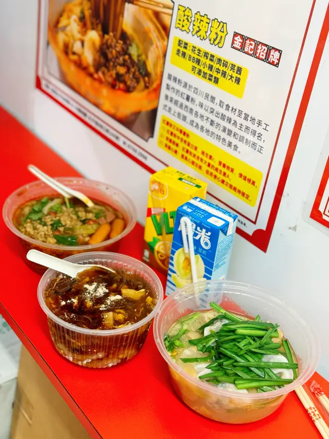 呢間金記小食店好出名酸辣粉我哋經過都要試一試,估唔到佢嘅酸辣粉夠晒正宗🍜仲可以揀唔同嘅辣我哋揀咗BB辣,夠晒滋味仲可以自選材料添,芝士腸、魚肉、腸仔、豬大腸同埋大量肉碎真係好好味呀😋咁我哋必食最佳拍檔,蘿蔔、豬紅、韭菜、大腸,仲可以加韭菜餃添🥟真係好大隻,大腸夠晒乾淨滋味😋仲有大量豬紅🔴我哋叫咗個魚肉碗仔翅Share,真係夠晒豐富😋大大碗魚肉,啖啖肉碗仔翅🍲夠晒Yummy!下次經過都要再食!Read More
