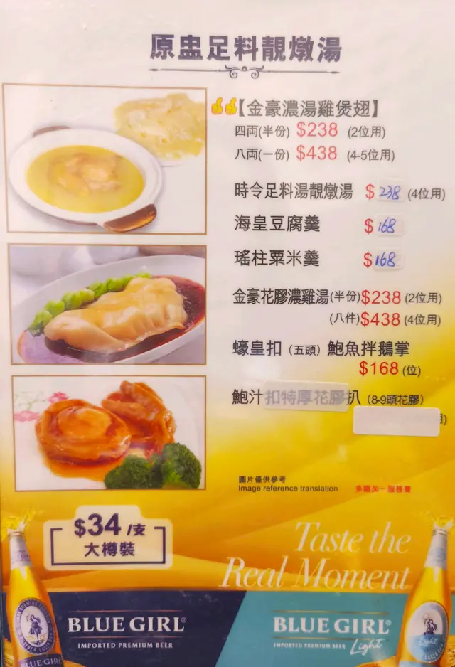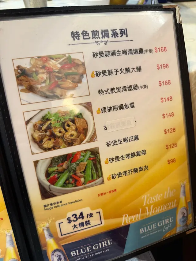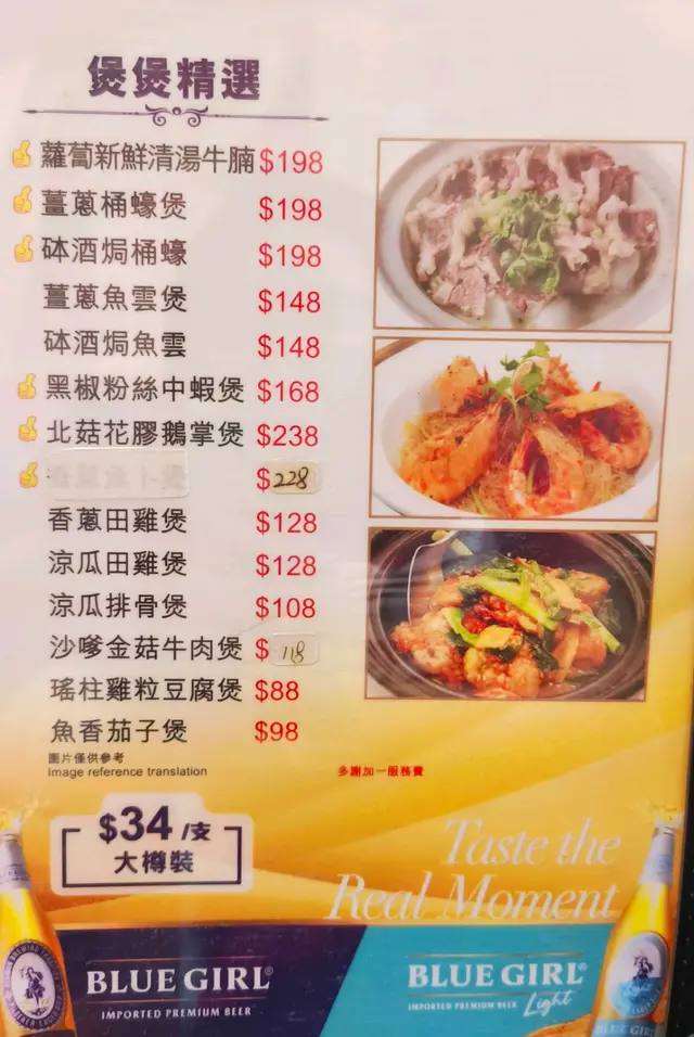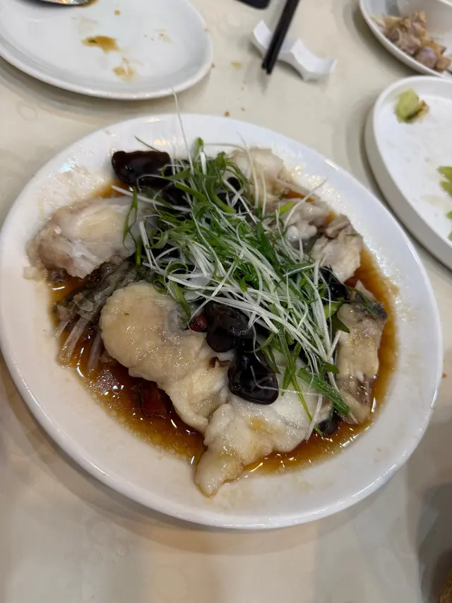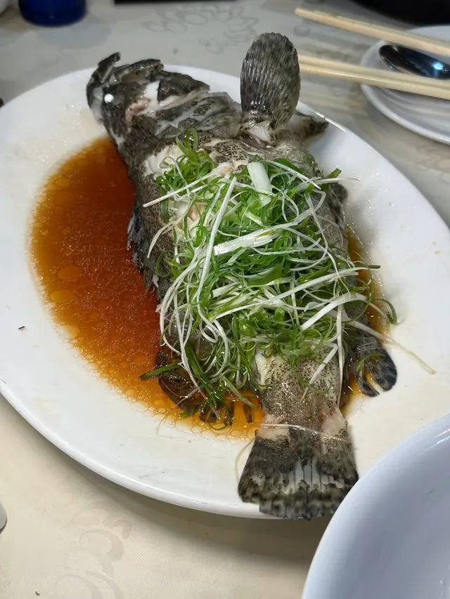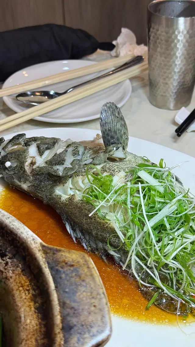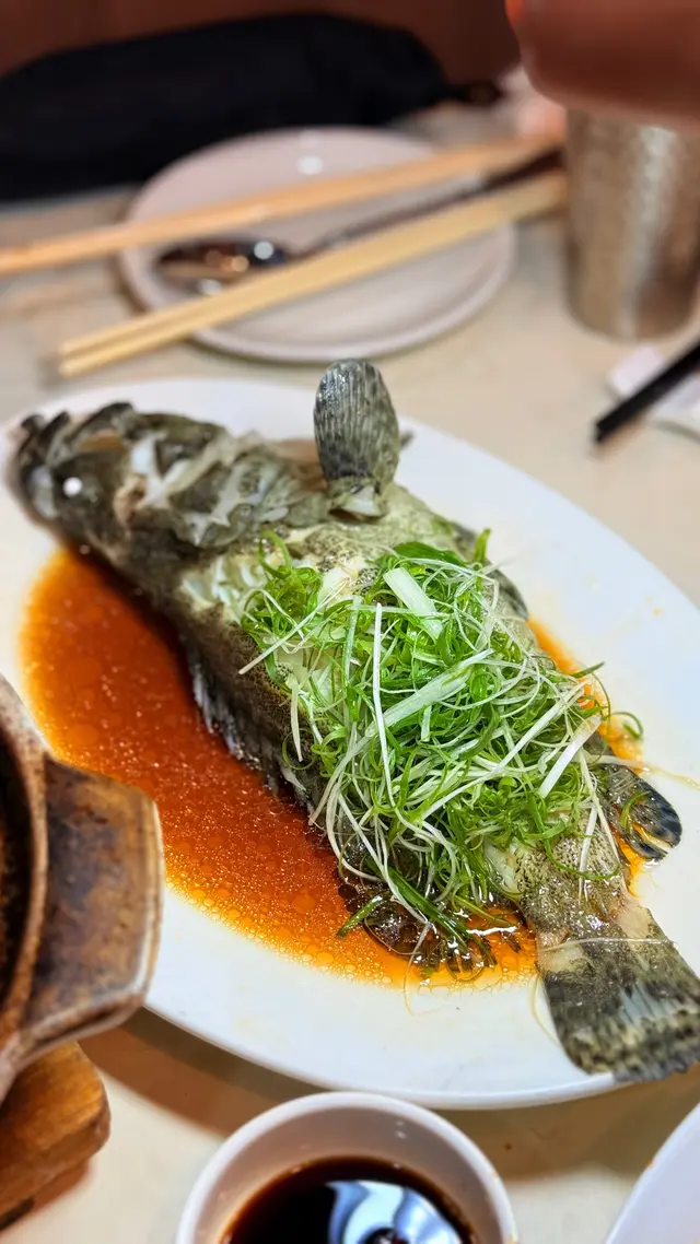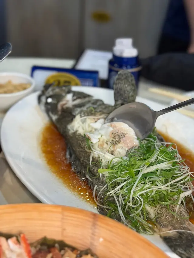 清蒸斑頭腩原條斑頭腩蒸到剛熟, 魚肉鮮甜, 肉質嫩滑, 口感滑順!魚油豐富, 鮮味十足~~豉油皇中蝦 $168用秘製豉油皇爆炒, 中蝦炒到金黃~蝦殼脆到可以連殼食, 蝦肉爽彈鮮甜, 非常惹味!!!蘿白清湯腩煲 $198牛腩炆到淋滑入味, 蘿白煮到透明, 索晒湯汁精華~~湯底清澈清甜, 整體味道平衡, 唔會太油膩