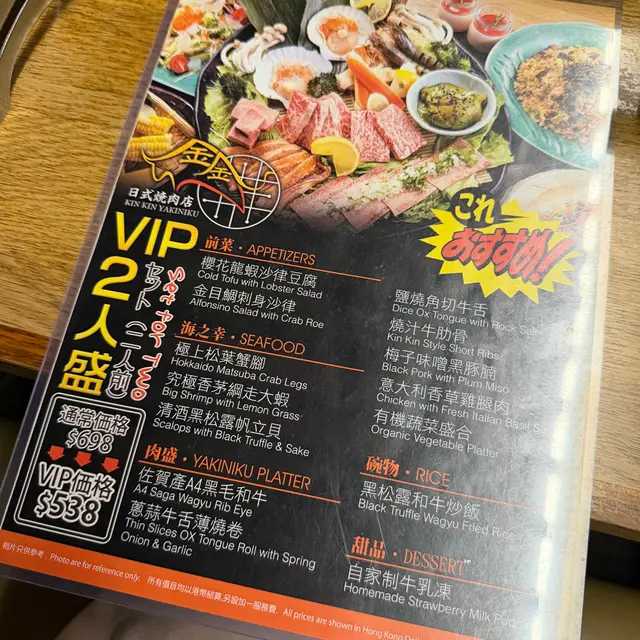 真係一分都畀多佢 首先嗌咗個vip二人套餐 每款用得兩塊 雞翼兩隻蝦有兩隻跟住一抽嗰啲唔知咩牛肉 如果你話好好食頂級牛肉我都仲另外計算但係問題佢啲牛肉係一啲好普通嘅牛角兩百幾蚊套餐質素嘅牛肉,炒飯唔好食不過乾字 甜品呀更加之不知所謂 冇奶味得個甜字 基本上佢所有嘅嘢我真係咁大個人都未見過可以係咁難食嘅燒肉 你人哋一般嗰啲 平價燒肉放題嘅肉質都追唔上竟然都夠膽收人哋 計埋加一六百幾蚊埋單, 唔怪之得夜晚最旺嘅時間竟然得嗰兩台客食緊嘢成場好似死場咁少人應該大家都中過一次伏之後就唔會再嚟 所以奉獻各位真係要睇埋啲負平先好去食…查看更多