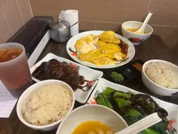 我點了招牌無骨海南雞飯(大份量)。主菜方面,雞肉完美無骨,雞皮彈牙,肉質肥嫩,無油膩感。雞味本身就很清爽,搭配的蔥油和辣椒醬更增添了一絲濃鬱的滋味。米飯粒粒分明,卻又不至於太過濃烈,卻又飽滿鮮嫩,令人滿足。附贈的自製湯頭,清淡甜美,湯底清淡柔和,帶來家的溫馨。飲品方面,我點了冰檸檬茶,茶香清爽,香氣宜人。糖漬檸檬片也製作精美,不澀不澀。總而言之,這是一家不張揚卻用心經營的本地餐廳。價格與口味完美平衡,無論是工作日獨自用餐還是與朋友簡單小聚,都是絕佳之選。我一定會再來的。