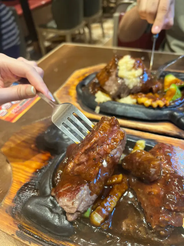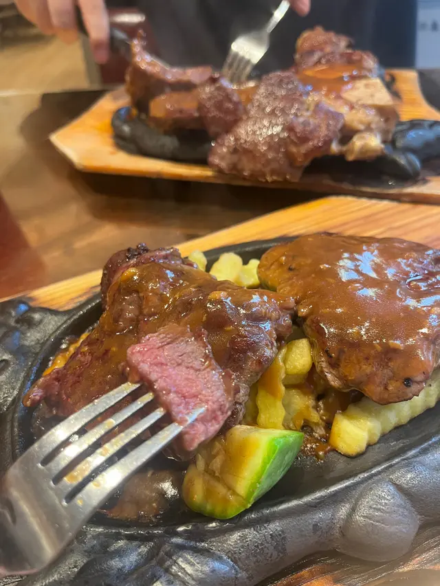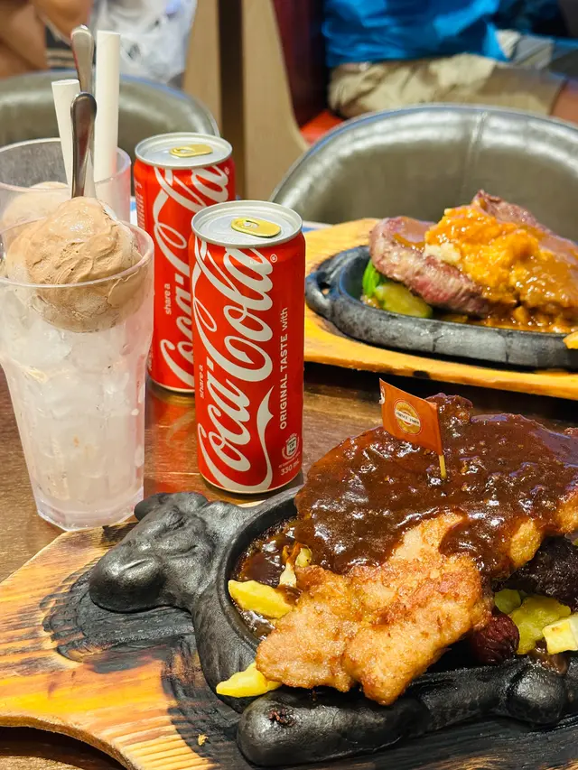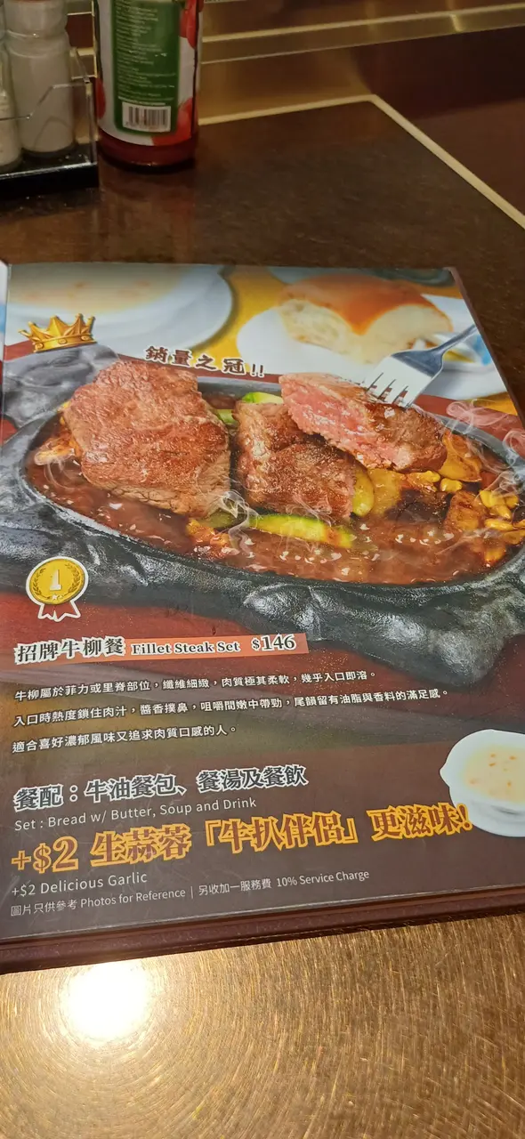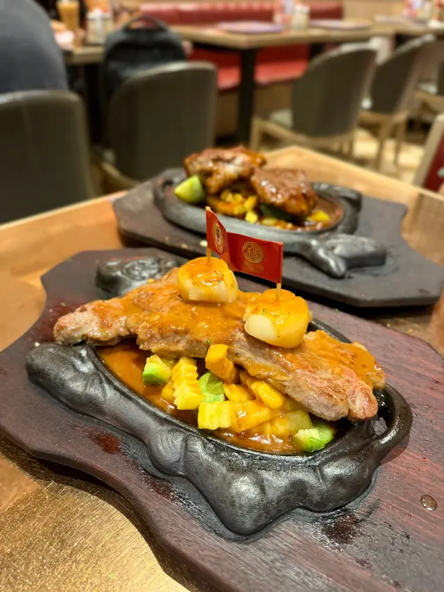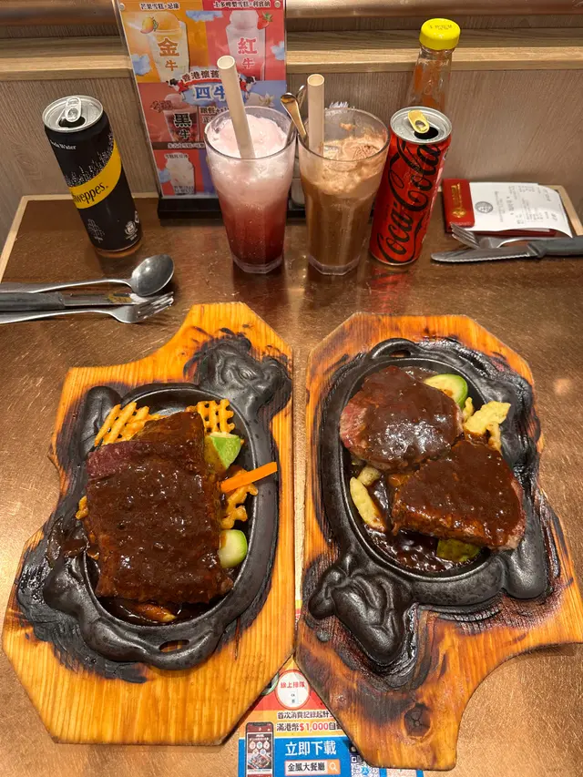 講起香港地道嘅西餐廳🍴,金鳳大餐廳絕對係唔少人心目中嘅老字號☺️!今次嚟到將軍澳寶林分店🚇,裝修完全擺脱咗老店嘅嗰種老土感覺💫,入邊光猛乾淨💡感覺幾時尚✨,加上價錢合理💰質素唔錯👌所以係區內嘅人氣餐廳🔥,經常都坐無虛席!佢哋有四款特色「牛」飲品🐮,跟餐加錢就可以飲到🍹,我哋就揀咗「紅牛」🍓,係士多啤梨雪糕🍨加利賓納梳打,甜甜哋又帶點汽水🥤嘅清爽,係港式西餐嘅經典口味👏!牛油餐包🍞熱辣辣🔥,外脆內軟,搽埋牛油🧈真係好香。忌廉湯🥣味道濃郁,口感creamy😋,暖胃又開胃👍,係食鐵板餐嘅最佳拍檔。主菜方面🍽️,我哋叫咗兩款經典鐵板餐🔥。首先係「50週年紀念出品:貴族牛扒餐」👑,呢個牛扒真係好有份量💪,美國牛肩頸肉質鮮嫩🐄,煎到外層微焦🔥,裡面仲保持住粉嫩嘅色澤💖,肉汁豐富🥩。我仲加咗$2要咗生蒜蓉🧄,呢個「牛扒伴侶」真係冇得輸👏!蒜蓉嘅香辣味🌶️同牛扒嘅肉味完美結合🤝,再配埋香濃嘅蒜蓉汁🧄,真係滋味到爆💥!另一款係「招牌牛柳餐」✨,牛柳肉質更加細嫩,切開之後🔪,粉紅色嘅肉質令人食指大動🤤。配上經典嘅黑椒汁⚫,微辛帶甜🌶️,將牛柳嘅鮮味提升到另一個層次🥩。兩款鐵板餐都係熱辣辣咁上枱🔥,滋滋聲響,香氣撲鼻😍,真係視覺同味覺嘅雙重享受🎉!總括嚟講📝,金鳳大餐廳作為香港嘅老字號🇭🇰,真係名不虛傳👍。大大份又高質嘅鐵板餐🥩,令人回味無窮👏!…查看更多