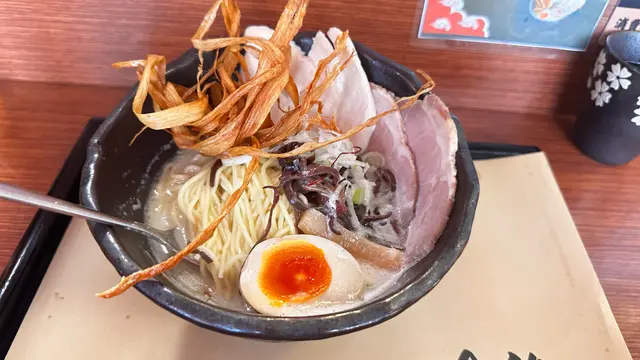 今日晚上朋友為我慶祝生日,她知我喜歡吃日本拉麵,就帶我去天后一間充滿日本風味的拉麵店,無論裝修風格以至拉麵都讓人感到有「返鄉下」的感覺😁。店面不算大但有個看得見的廚房,近距離跟廚師交流。。。。🧑🍳🧑🍳😂😂 ,所以我哋特別選Bar 台坐可以睇廚師煮麵😂。Menu 有好多款拉麵選擇,但廚師知道是生日飯,就介紹我哋我哋吃瀬戶內海蠔湯拉麵和雞白湯拉麵,等着也看着廚師怎樣把我哋的拉麵煮出來,廚師純熟的手藝和擺盆都一目了然!🤤當廚師把兩碗拉麵送來時,我哋看到擺設十分精美,所以讓相機食先啦!😂😂 廚師提示我哋首先要嚐湯底,雞白湯很濃厚的雞味,真材實料 ,蠔湯很鮮味,拉麵軟硬適中,日本蠔煮熟了還再在蠔面上燒一下,食落感覺鮮甜香口,我哋其實想點其他日式小食,但太飽了,食唔落,下次來就要帶多幾個朋友先得😅 。
