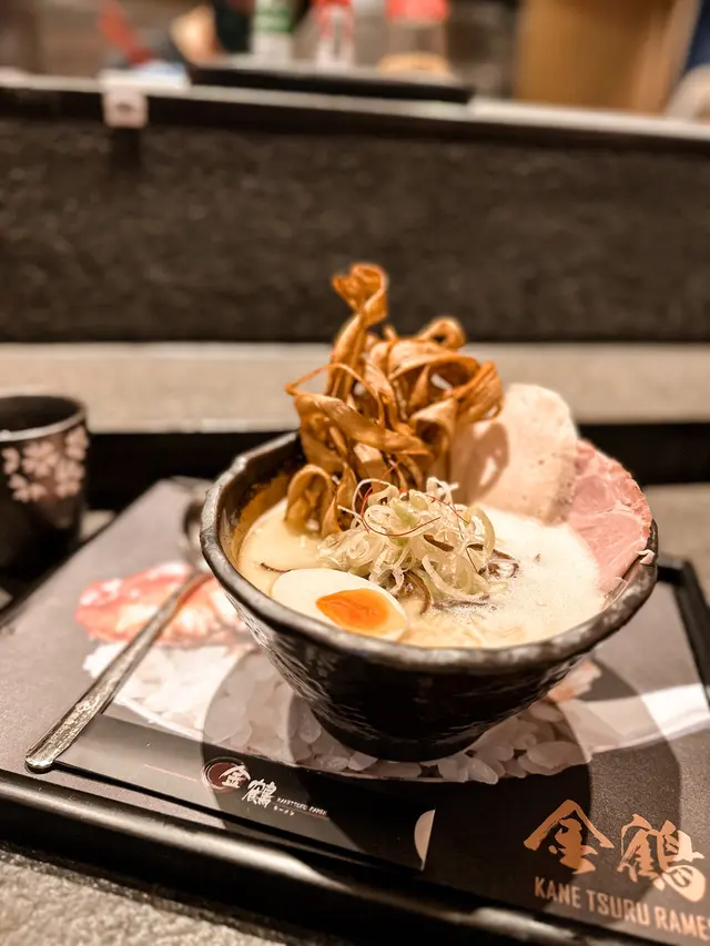 社蓄的ME難得星期五都要OT~為有去食好啲補償( ˘•ω•˘ )去左銅鑼灣主打高質拉麵既金鶴拉麵🍜🎟️去到樓下有個姐姐好熱情地派coupon,食滿$400減$100,都算優惠係呢區既拉麵嚟講🧐 · - - · - - · - - · - - ·🔸 北海道蟹湯拉麵 $138🔹 金鶴雞白湯拉麵 $98🔸 蒲燒生燒鰻魚 {2串$128}· - - · - - · - - · - - ·招聘金鶴雞白湯拉麵🐔🍜無叫到極濃,因為唔想咁夜都食咁肥🫣但招牌個雞湯已經好香濃好好味😋配埋慢煮雞肉,炸脆既菇,荀同埋叉燒仲有半隻溏心日本蛋,雞肉好滑,湯底好好飲又有種好厚既感覺但唔膩~~每啖都濃厚雞湯,真心好食👍🏻北海道蟹湯拉麵🦀試左朋友個湯底一啖,超級濃既日本蟹味,仲要超多蟹肉,真係一分錢一分貨,蟹湯拉麵同樣有叉燒,但其他配料有啲唔同,例如有脆脆紫菜,蔥🧅同柴魚🍜🍢仲叫左個蒲燒生燒鰻魚串燒,可能食完個麵有啲飽先嚟,覺得個鰻魚串燒一般般,同埋中間個舊鰻魚有少少韌🤏🏻🤏🏻 串燒有待改善,個拉麵無得輸🍜今餐大滿足😌但座位方面🪹坐左係間房仔入面,有啲焗速😮💨…查看更多