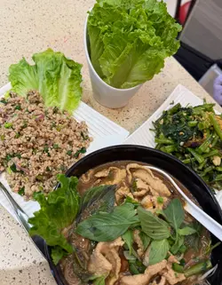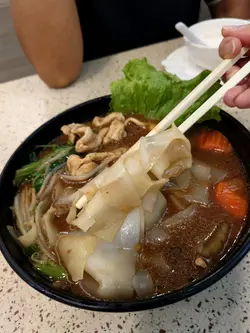 ,而青口肉也比預期軟軟,不會又韌又難咬,好吃。選這個套餐都是因為這「泰式明爐梅子魚」(套餐),熱焫焫的明爐上枱,份外有氣勢,而且,條烏頭很大條,魚肉很鮮甜,很嫩滑,十分有魚味;加入梅子令湯底酸酸甜甜,醒胃好喝,而湯裡面還有些手打肉丸及蔬菜,很美味的一道明爐魚鮮菜式