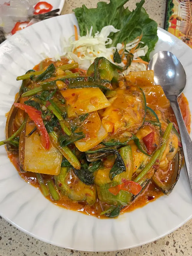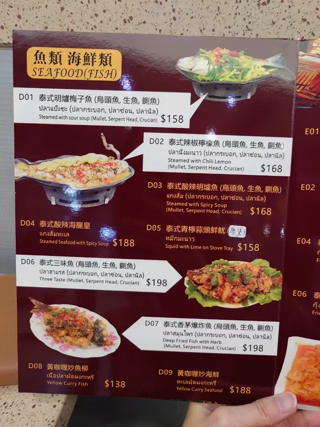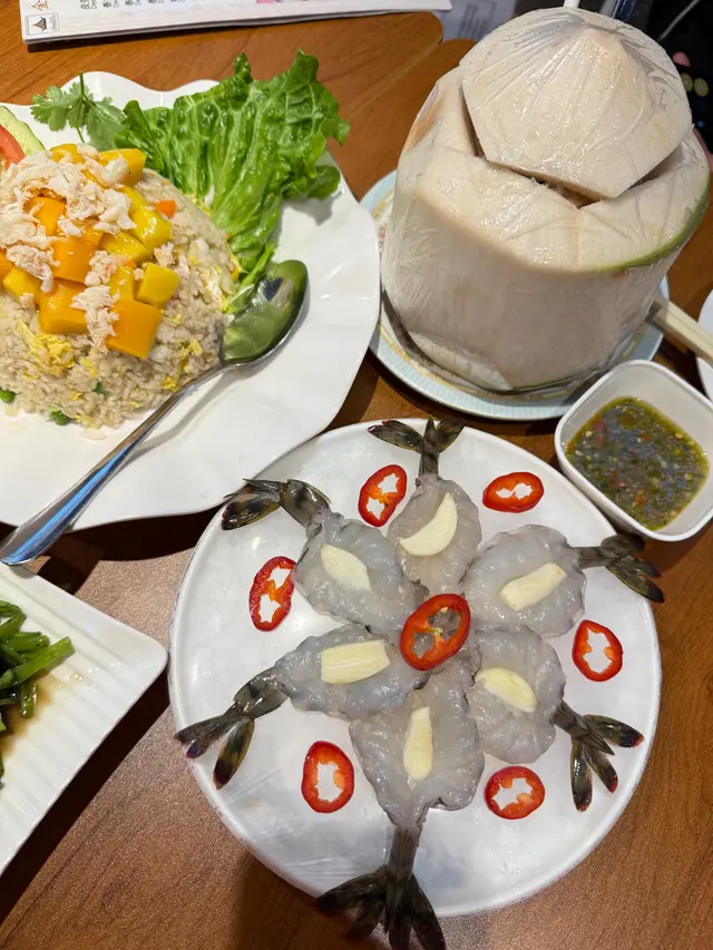 週日晚上同朋友一齊嚟咗呢間泰國🇹🇭餐廳食晚餐🤣$68「泰式椰汁雞湯」:雞湯奶白色味道濃郁,裏邊仲有大量雞肉同野菌可以食,亦都落咗大量香料,包括香茅、洋蔥、香蔥、芫荽等🤣$98「泰式海南雞半隻」:海南雞拆咗骨食得好方便,亦都煮得夠熟但係又唔會太熟所以肉質好滑,而雞皮就仲滑,朋友同我都忍唔住食咗1-2塊雞皮🤣,仲有一小碟辣辣哋嘅醬汁可以沾雞食🤣$68「泰式肉碎生菜包」:自己用生菜包住啲豬肉碎嚟食,豬肉碎份量夠晒多,豬肉碎裏邊有瘦肉、肥豬肉、洋蔥等,用生菜包住嚟食,惹味得嚟有啲啲清新嘅感覺🤣$78「泰式蒜蓉炒椰菜苗」:椰菜苗🥬新鮮所以非常爽脆,泰式蒜蓉炒簡單好食🤣$32「椰青」:有清新嘅椰子味兼少少甜🤣$168「泰式鹽燒烏頭魚」:烏頭魚都幾大條,夠多肉,搽咗啲粗鹽喺魚皮上邊先嚟燒所以魚皮燒到硬硬哋,咁樣可以較為鎖住魚汁😋;仲加咗啲南薑、香茅、蒜頭喺魚肚裏邊咁樣既可以辟魚腥味又可以清香啲🤩;魚肉肉質鮮甜又夠juicy😋…查看更多