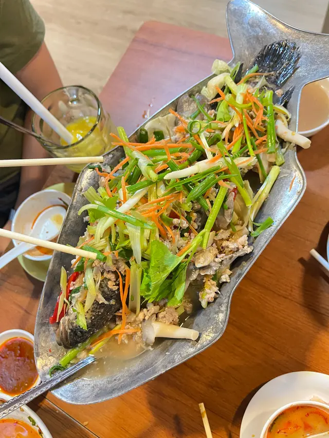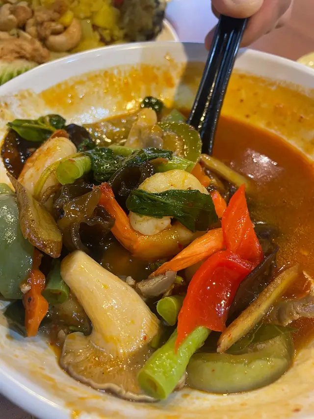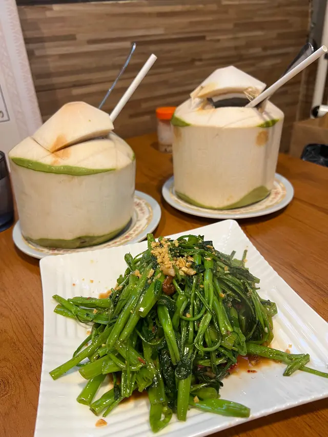 同朋友一齊喺九龍城,人人都知道呢區有勁多泰國菜館🇹🇭,呢晚就揀咗呢間高質素泰國🇹🇭餐廳食晚飯🤣$78「泰式馬拉盞炒椰菜苗」:椰菜苗🥬好新鮮,非常爽脆,馬拉盞炒提升味道,仲帶啲啲BB辣,食得好開胃🤣$32「椰青」:有清新嘅椰子味,清甜好飲🤣$95「泰式海南雞半隻」:海南雞皮黃肉白仲拆埋骨食得超級方便🤣,雞肉煮得夠熟但係又唔會太熟所以肉質好滑好雞味(太多餐廳嘅雞煮得唔夠熟雞骨血淋淋啲血仲黐咗落啲肉度有啲就連厚肉嘅地方都唔係好熟 ),而雞皮就仲滑,朋友同我都忍唔住食咗1-2塊雞皮🤣,呢碟海南雞係高質素🤣$158「泰式明爐梅子烏頭魚」:烏頭魚魚肉肉質鮮甜又幾結實,大大條有好多魚肉可以食🤣,仲加咗芫荽、香蔥、芹菜、香茅、豬肉碎、蒜頭粒、南薑等一齊煮,咁樣味道又提升好多🤣,仲有,泰式明爐煮由頭食到尾都熱辣辣😋,仲有啲煮魚嘅湯汁可以飲吓🤣$75「泰式蒜蓉焗牛油大頭蝦一隻」:叫咗兩隻🦐🦐🤣,用大頭蝦加牛油加粟米加洋蔥加紅蘿蔔粒加香蔥一齊炒或焗,有濃郁嘅牛油香味🤣;兩隻🦐都大大隻真係有好大個蝦頭🤣,蝦頭裏邊又有啲啲蝦膏🤩,而蝦肉肉質結實🤣…查看更多