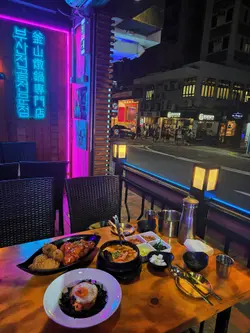 尖沙咀「韓國街」嘅韓國餐廳真喺花多眼亂,間間都好似差唔多咁,一時唔知揀邊間好🧐但見到呢間環境行韓式工業風格,睇落好闊落、感覺好有氣氛、佈置都好有心機、好有萬聖節氣氛🎃就行咗入去試吓啦~~~聽講佢地嘅大廚、老闆、員工都喺釜山人,想食正宗嘅釜山菜式就一定要嚟呢間啦!👉🏻 釜山商會「章三蝦」一人鍋💰128有章魚🐙(爽口彈牙~佢地仲幫我哋剪埋,好好服務👍🏻)、蝦🦐同五花肉🐖,仲加埋配菜娃娃菜、秀珍菇同韓國公仔麵,湯底嘅海鮮味好濃郁,吸收晒章魚同蝦嘅精華,鮮味十足!呢個鍋滋味又飽肚!推介!(🔔鍾意辣嘅可以揀辣味㗎~)👉🏻 韓式石鍋牛腸鍋💰128牛腸經過韓式醬料燉煮,油脂豐富但唔膩口~入面仲有牛栢菜、多種配料,湯底香辣惹味,值得一試~(鍾意食重口味嘅朋友話呢道喺佢最鍾意嘅菜式😛)👉🏻 釜山商會風味炸雞鎚💰98呢間雖然唔喺韓式炸雞專門店,但佢哋嘅炸雞🍗真心唔錯!一啲都唔比出面嘅炸雞專門店遜色!雞鎚好大隻,份量大,而炸皮好脆唔會太厚,雞肉好多肉汁,咬落去好juicy! 唔怪得之喺餐廳嘅人氣之選啦!👉🏻 醬油蝦蓋飯 (8pcs)💰148醬油蝦經韓式醬油醃製,味道偏甜中帶鹹,唔會得個鹹字、味道啱啱好,蝦肉都好鮮甜!配埋白飯嚟食,啲醬汁滲入飯粒,超入味!送飯一流😋好味到清哂成碗飯!整體嚟講,呢餐真喺食得好滿意,服務、環境、味道都好好👍🏻下次會再帶多啲朋友過嚟試其他菜式,仲會試埋佢嘅$108/90mins 任飲🍻~襯住而家呢個天氣涼涼地,坐喺佢嘅室外位,同朋友傾吓計、飲吓嘢已經非常有feel! 想飲嘢嘅朋友都唔需要過去諾士佛台啦😆