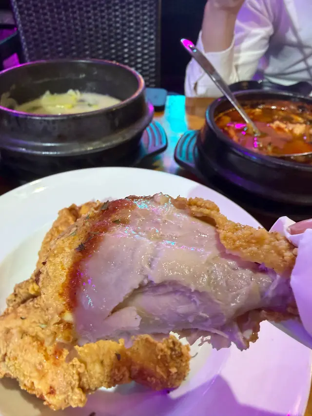 呢排我又重投韓劇嘅懷抱每次睇到佢地聚餐食嘅野都好吸引今日約埋同樣愛吃韓食嘅朋友仔一齊試下呢間韓國餐廳餐廳空間都幾大, 入面有好多座位, 門口有兩隻青蛙歡迎我哋我地去嘅時候係放工時間, 陸續都有客人入嚟, 大部份都係後生仔女, 餐廳播住韓國流行曲, 少少昏暗嘅燈光好有feel入座入由OPPA端上韓式前菜六小碟有d前菜都不是常見, 例如:薯仔條, 醃牛蒡, 黑豆等, 前菜係可以refill的在場大部份侍應都是OPPA, 要說英語的,不過如果真係有困難, 佢地有位女生係識講廣東話, 同埋落單係用QR Code, 所以應該沒難度點咗佢地嘅新menu: 辣粉年榚橙黃色的是芝士粉和韓式辣醬, 仲有好多材料年榚當然少不得, 金菇、魚榚、腸仔、洋蔥、大蒜和蔬菜, 份量都幾驚人會由Oppa 幫手煮(食韓餐的快感)將韓式辣醬和芝士粉都融入整個鍋後,就可以食得啦我哋兩位女生,食咗好耐都仲有好多料,好似食極唔完咁有芝士味嘅辣湯,好惹味年榚煙韌軟糯,係腸仔淋身少少另外朋友見到隔離檯點咗呢個:韓式芝士吉列豬扒,佢都好想試喎因為見到有拉絲嘅芝士,又係好吸引嘅Btw,如果覺得湯底太辣,可以加清湯中和返你睇下….真係好誇張芝士由入面都爆出嚟四大件外皮脆卜卜,配埋側邊嘅粟米芝士,好似去咗食韓燒咁埋單嘅時候,侍應話佢哋做緊個社交平台活動只要即場follow 佢地社交平台, 就可以揀個愛情鎖,仲可以即時寫上願望並將鎖扣起店內嘅「釜山橋」上我都要搵返啲青春回憶先🫶🏻呢度幾適合一大班朋友和情侶嚟聚餐份量大又可以「許願」…查看更多